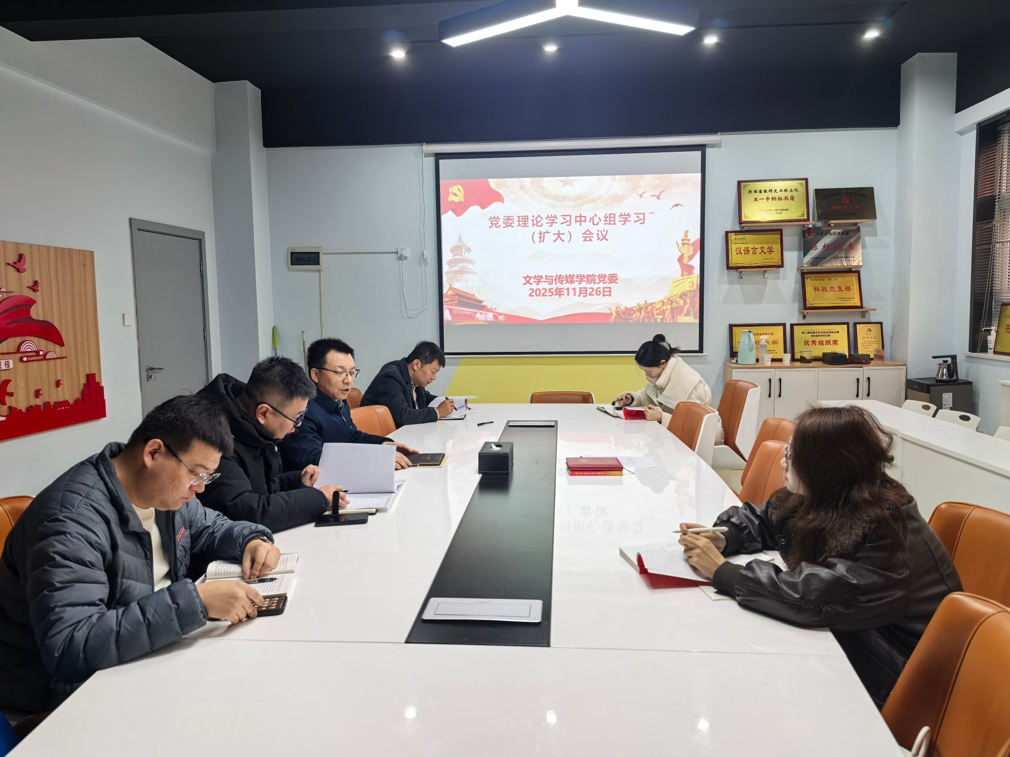 2025年11月25日,文学与传媒学院召开党委理论学习中心组学习(扩大)会议。学院党委委员、各党支部书记参会。党委书记李绍先主持会议。