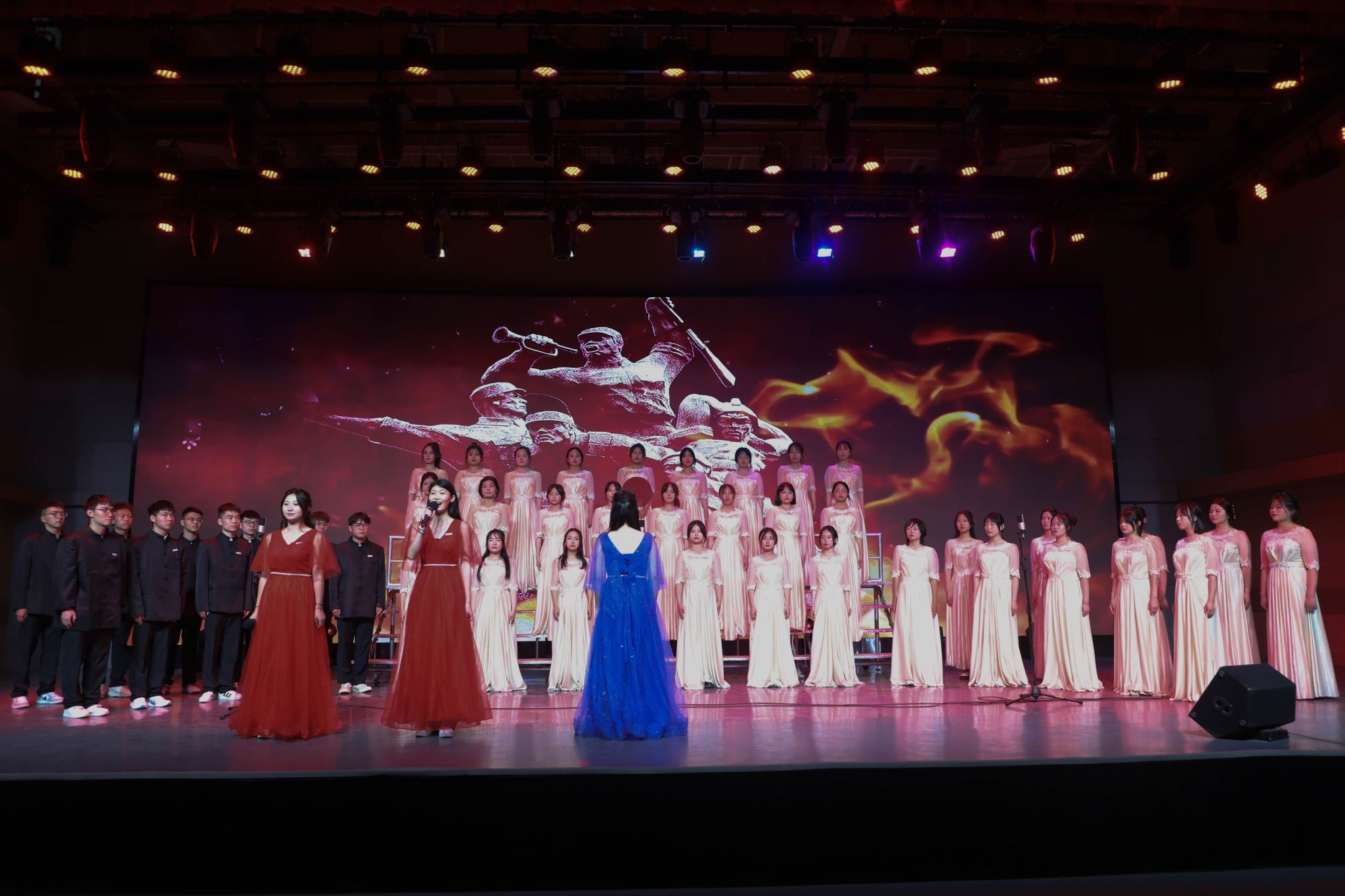 活动最后,政府督导专员、校党委书记栾宏作总结讲话。他指出,本次教育学院举办的“逐梦强国路 放歌新征程”合唱展演活动承载着传播校园文化、展现教育学院学子风采、丰富同学们课余文化生活的使命,在新的历史时期,重温、传唱红色经典歌曲,不仅是一种追忆和传承,更是在感受一种激情,汲取一种力量。歌声悠扬,唱不尽的是教育学院学子对祖国的热爱、对党的拥护,是不忘初心、牢记使命的坚定信念。本次合唱展演激发了同学们的爱国主义热情,以青春之声唱响新时代,以青春血脉传百年薪火,以青春力量谱时代新篇。在奋进新征程的道路上,教育学院的学子们定当以实现中华民族伟大复兴为己任,增强作为新时代青年的志气、骨气和底气,在灿烂如花的人生季节里,把握青春时光,珍惜青春年华,唱响时代最强音,以昂扬的姿态、拼搏的精神、扎实的奋斗,点燃精神火炬,在磨砺中成长为能够担当民族复兴大任的时代新人。