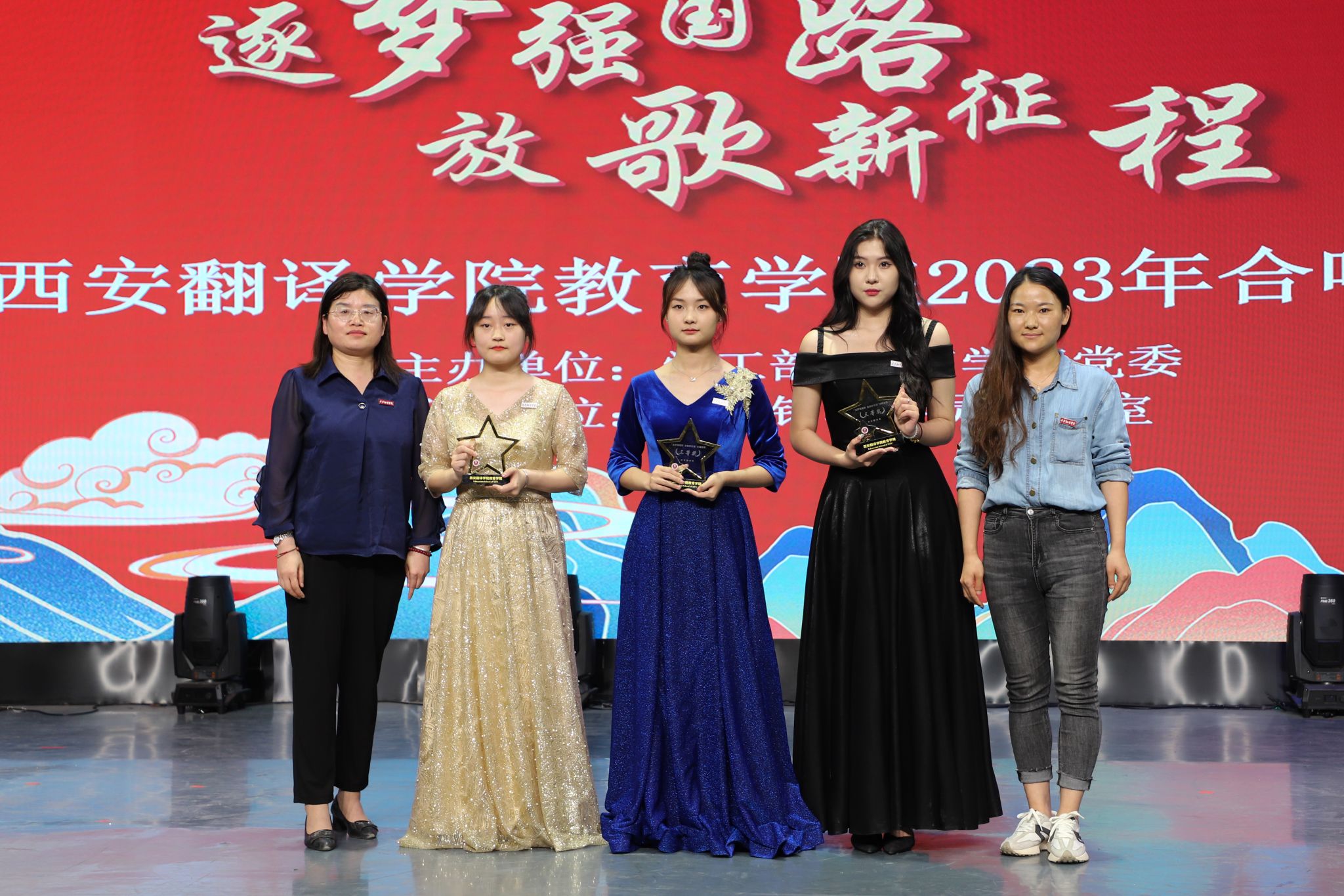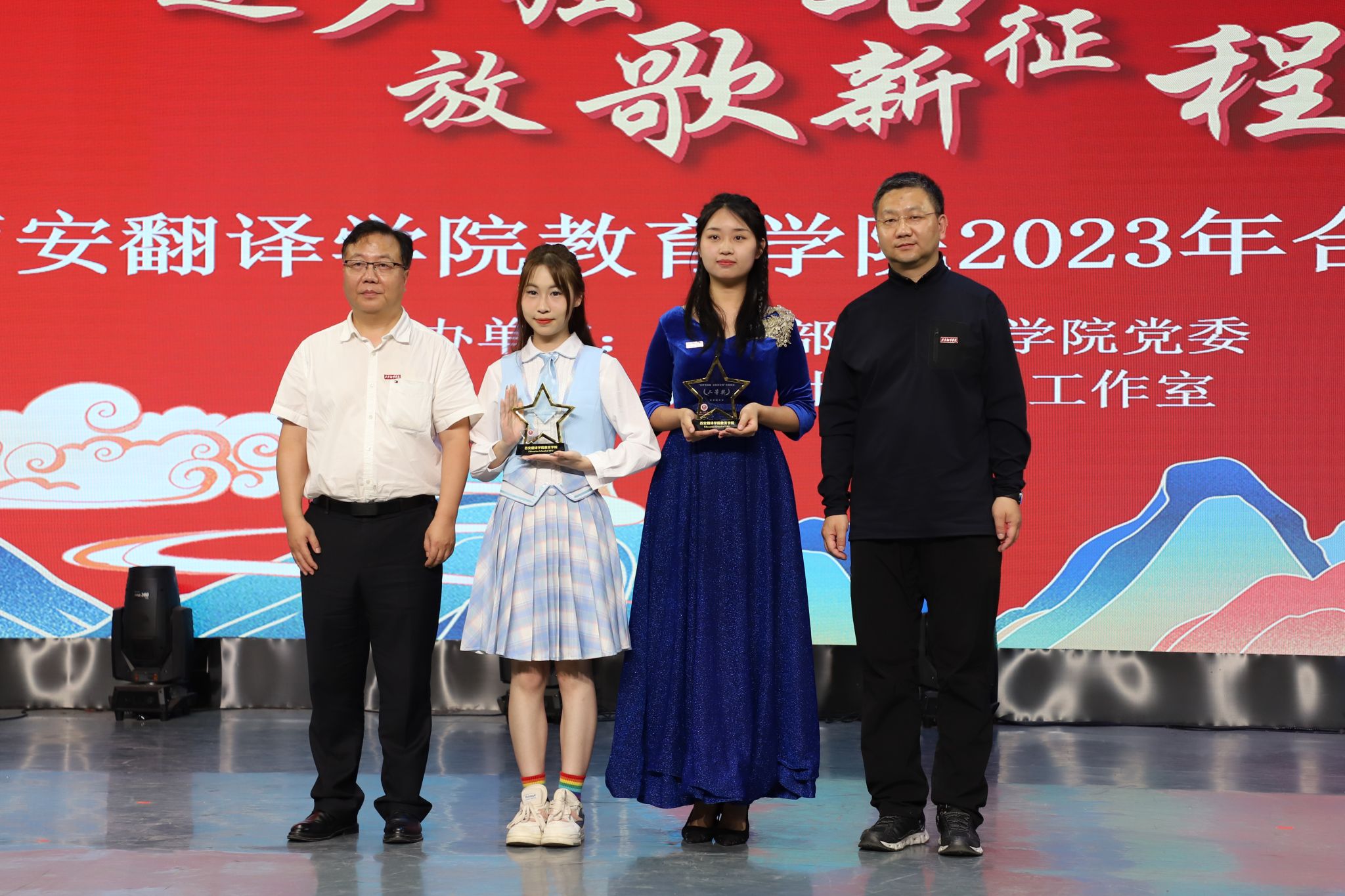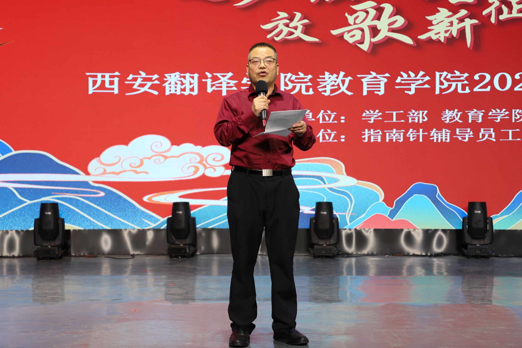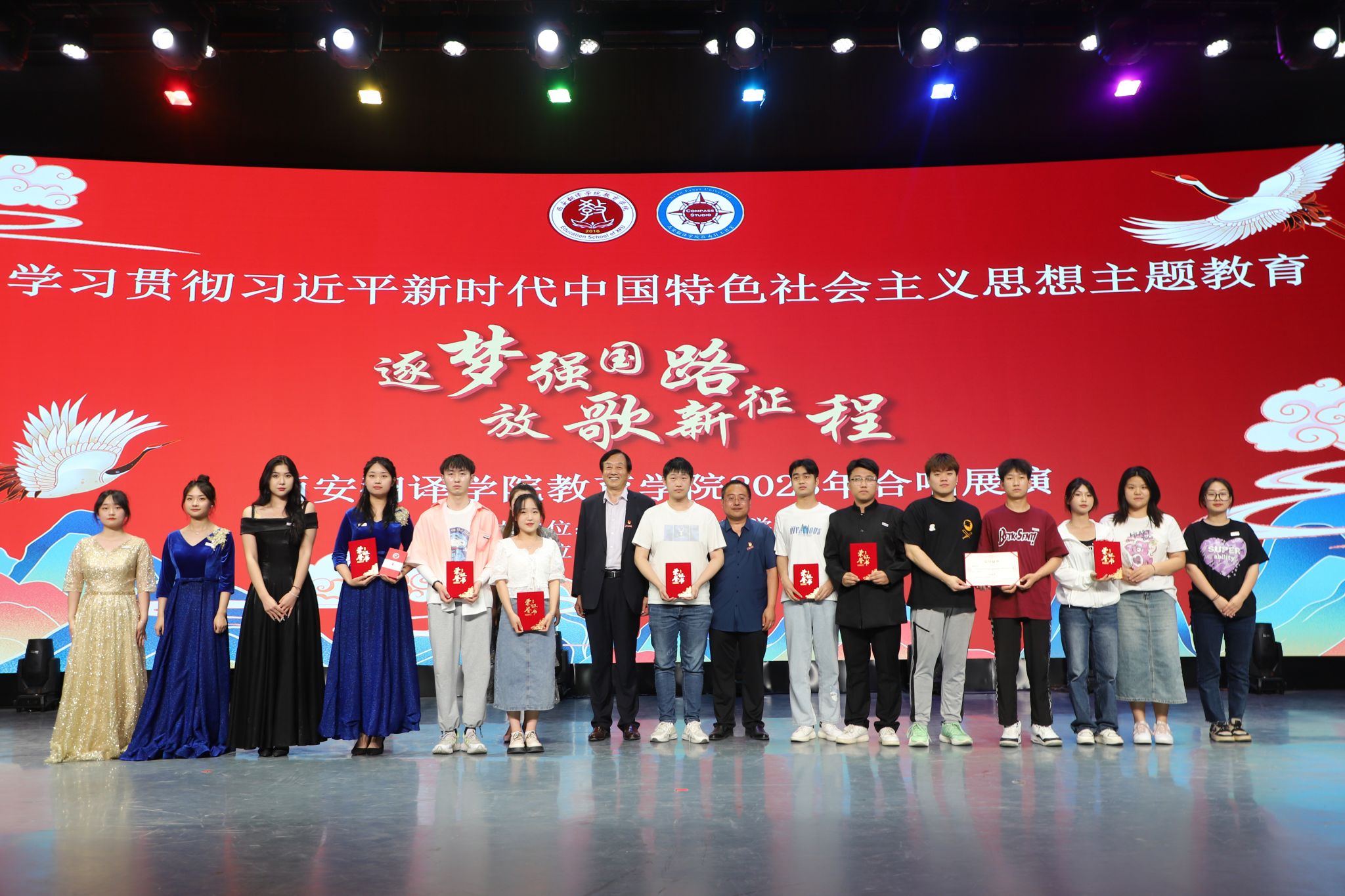 为深入学习贯彻习近平新时代中国特色社会主义思想,引导广大青年弘扬社会主义核心价值观,厚植爱国主义情怀,引导激励广大青年“听党话、感党恩、跟党走”,点燃青春梦想,展现新时代青年奋发向上的精神风貌,5月16日晚,由校学工部、教育学院党委主办,西安翻译学院指南针工作室承办的西安翻译学院教育学院“逐梦强国路 放歌新征程”2023合唱展演在科技楼五楼演播大厅隆重举行。政府督导专员、校党委书记栾宏,校党委副书记、副校长郭炜,校党委副书记、副校长张恒,组织部部长李雪莹,宣传部副部长汪杰,校团委副书记岳蓓,教育学院院长何兆华,党委书记、行政副院长王小龙,副院长辛维英,以及兄弟院系党支部书记、团总支书记,教育学院各部门、系、中心的领导和老师出席活动,学生代表一同观看了本次展演。