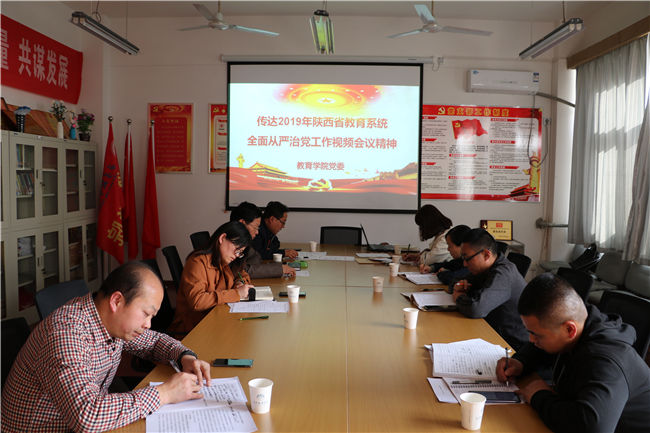 第四项由王小龙书记带领大家学习了“2019年陕西省教育系统全面从严治党工作视频会议精神”,对董小龙书记、刘振涛组长、王建利厅长的讲话精神和要求进行了认真的学习和领会。