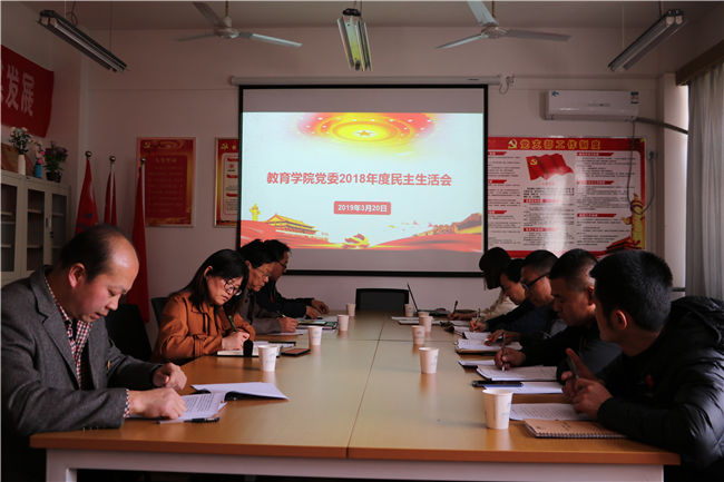 第二项由王小龙书记就2018年教育学院党委在思想建设、组织建设、作风建设、廉政建设、群团工作、安全稳定以及辅导员队伍建设等方面工作做了回顾总结。并代表党委班子汇报民主生活会的前期准备情况,对照检查剖析了班子存在的问题和今后整改措施。参会的各党委委员和支部书记也做了对照个人检查,认真查找自身存在的问题和不足,并提出了整改措施,大家坦诚相见,充分运用批评与自我批评有力武器,对班子成员依次提出批评意见。