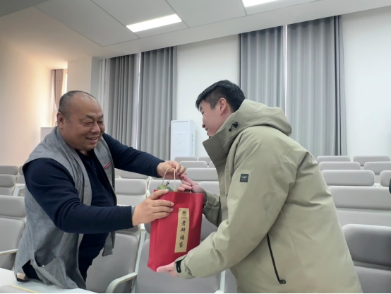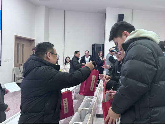 接下来,董千院长发表讲话,向所有正在备战研究生考试的同学表达了最诚挚的问候和祝福。同时表示同学们不是一个人在战斗,老师永远是你们坚实的后盾,学院为了帮助大家更好地应对考试,特此赠予各位同学冬日暖阳考研礼包,为大家加油鼓劲、提供支持和关爱,以及每份暖阳考研礼包里都有老师们亲手写下的祝福语便签,所有老师衷心的希望大家取得好成绩,我们一“研”为定!