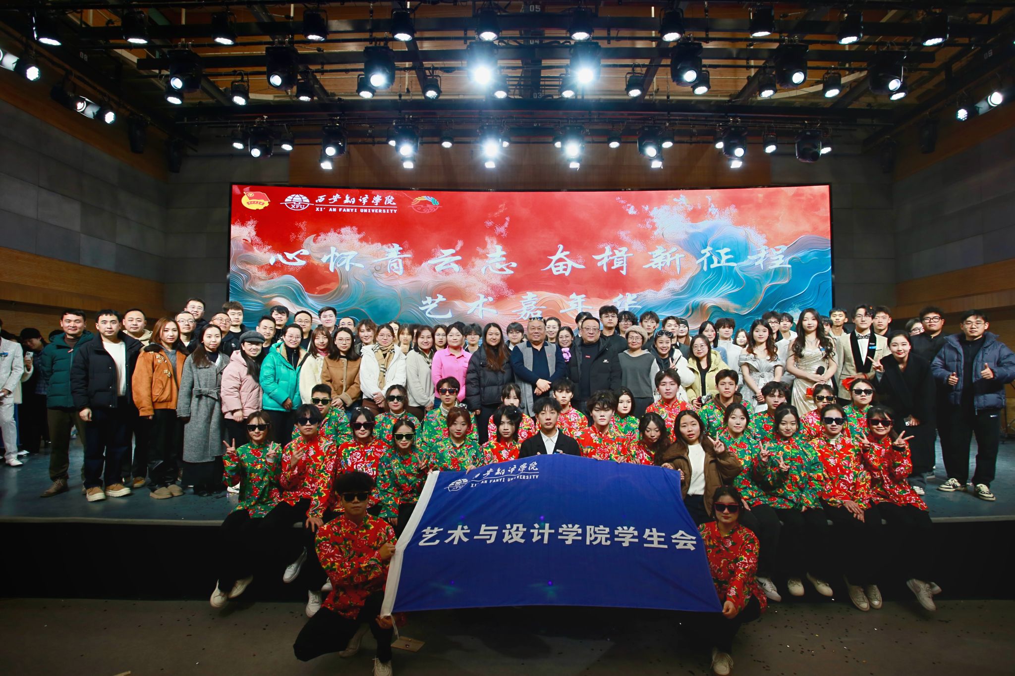 12月16日晚,西安翻译学院艺术与设计学院隆重举办了以“心怀青云志 奋楫新征程”为主题的第八届艺术嘉年华文艺晚会。西安翻译学院党委副书记副校长张恒、西安翻译学院组织部部长李雪莹、西安翻译学院学生工作部部长张祥宇、西安翻译学院团委副书记岳蓓、艺术与设计学院院长董千、艺术与设计学院党委书记行政副院长徐中、艺术与设计学院副院长马平、艺术与设计学院教学副院长吴迪及各学院团总支书记、艺术与设计学院各系教师代表、学生代表共同出席本场活动。