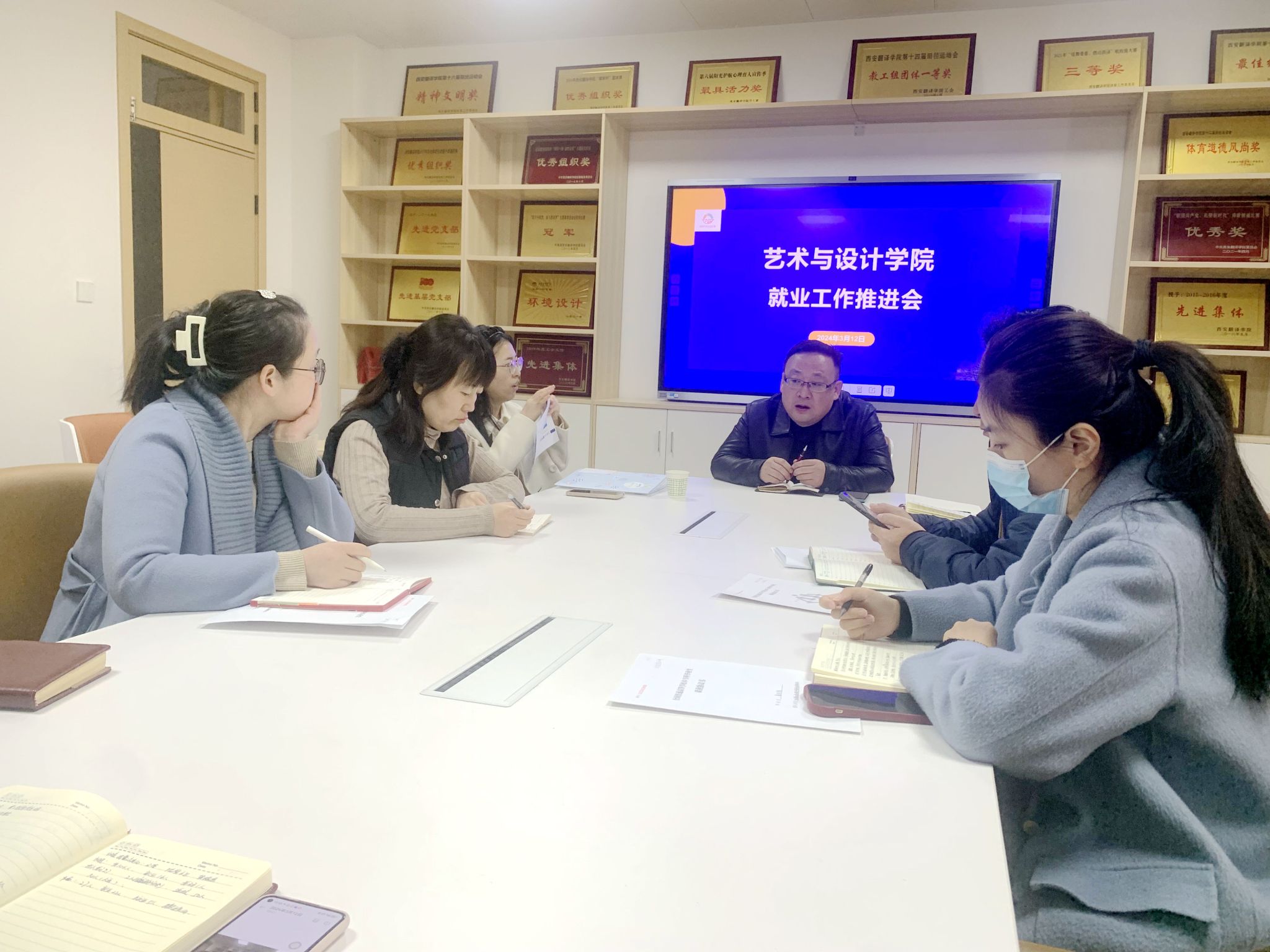 抢抓春季就业关键期,推动毕业生尽早尽快就业,进一步优化就业服务指导,提高就业率,3月12日上午,艺术与设计学院在创咖召开2024届毕业生就业工作推进会。学院党委书记徐中,综合办副主任王瑛,大学生就业创业指导服务中心郝晋娴及全体毕业班辅导员参加。学院党委书记徐中主持会议。