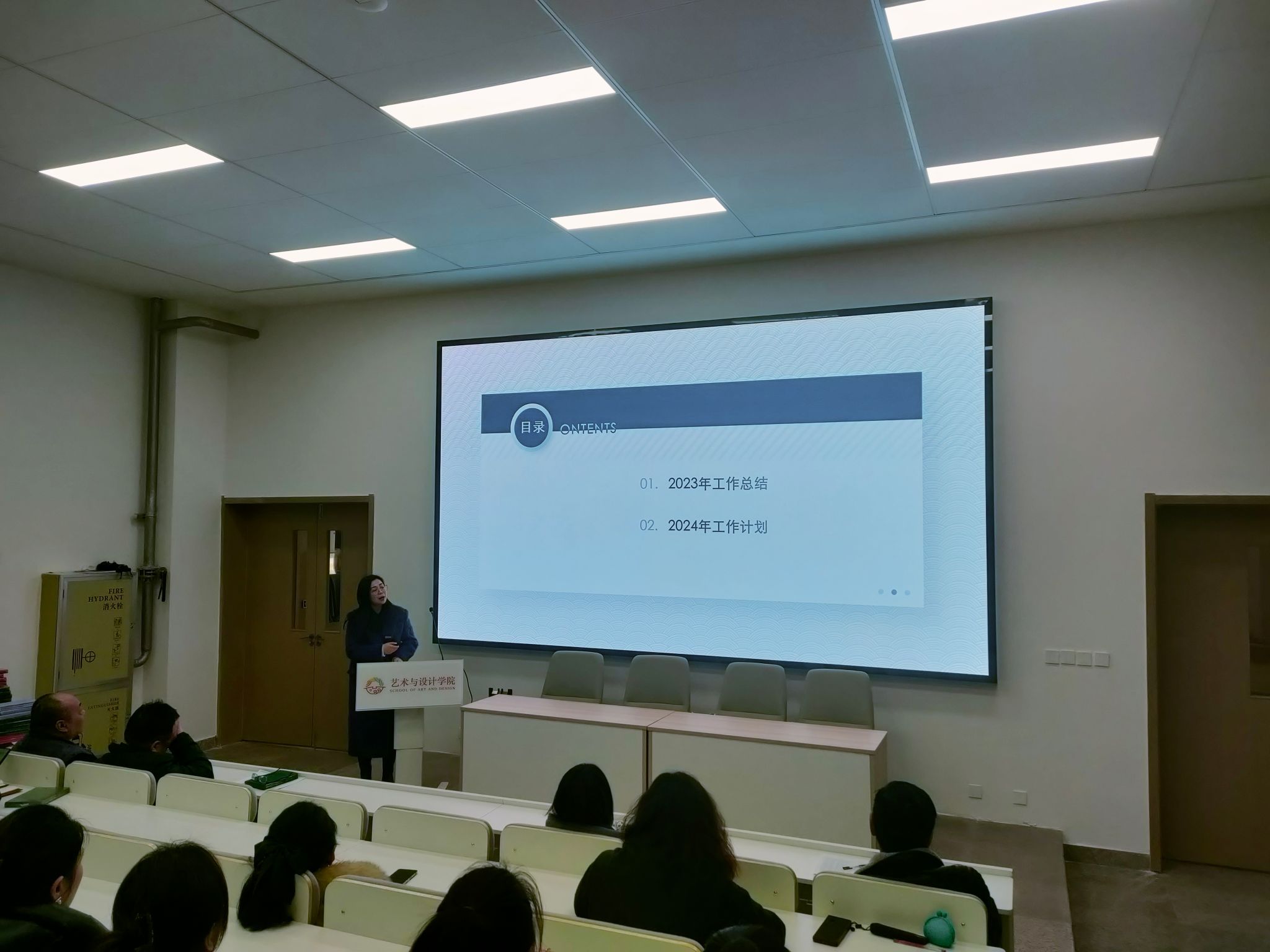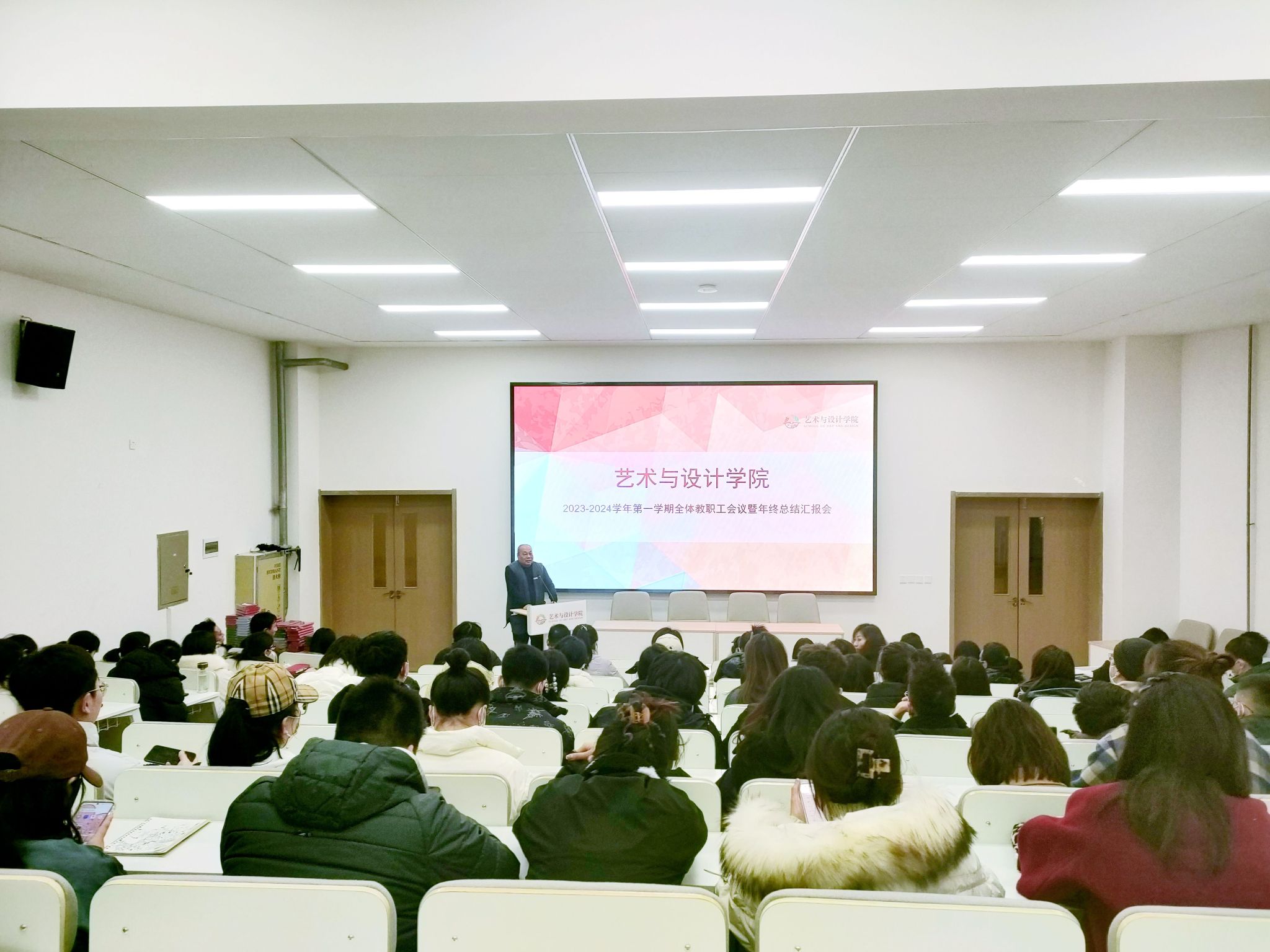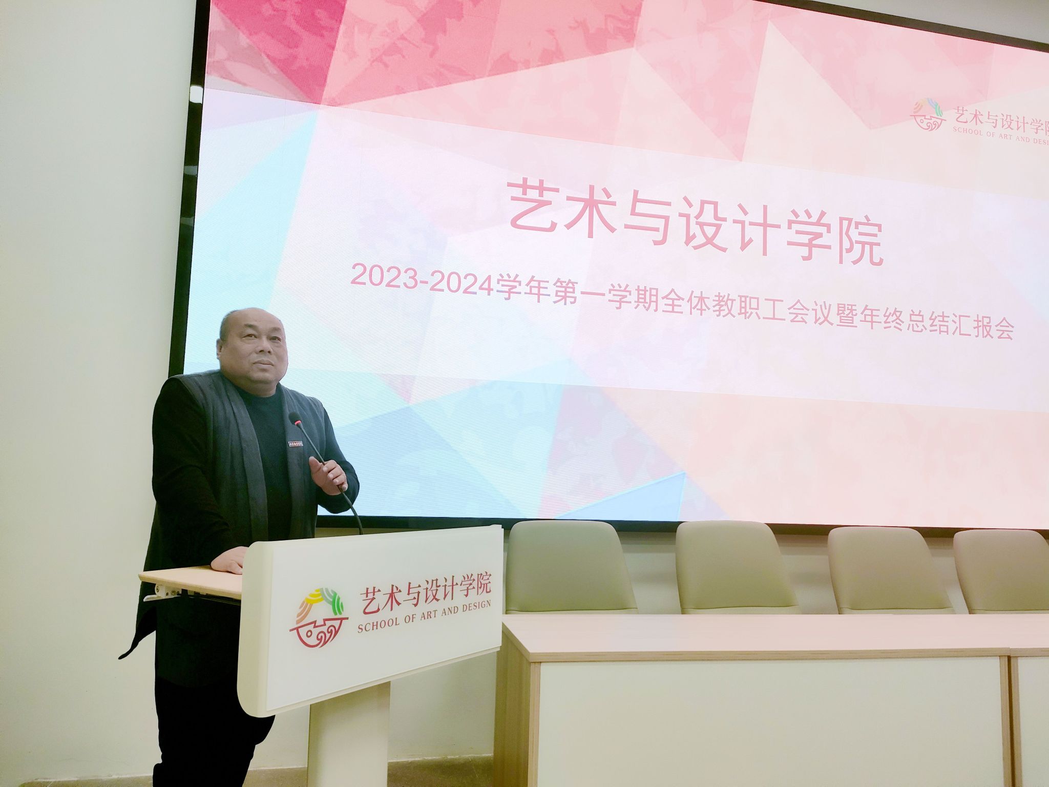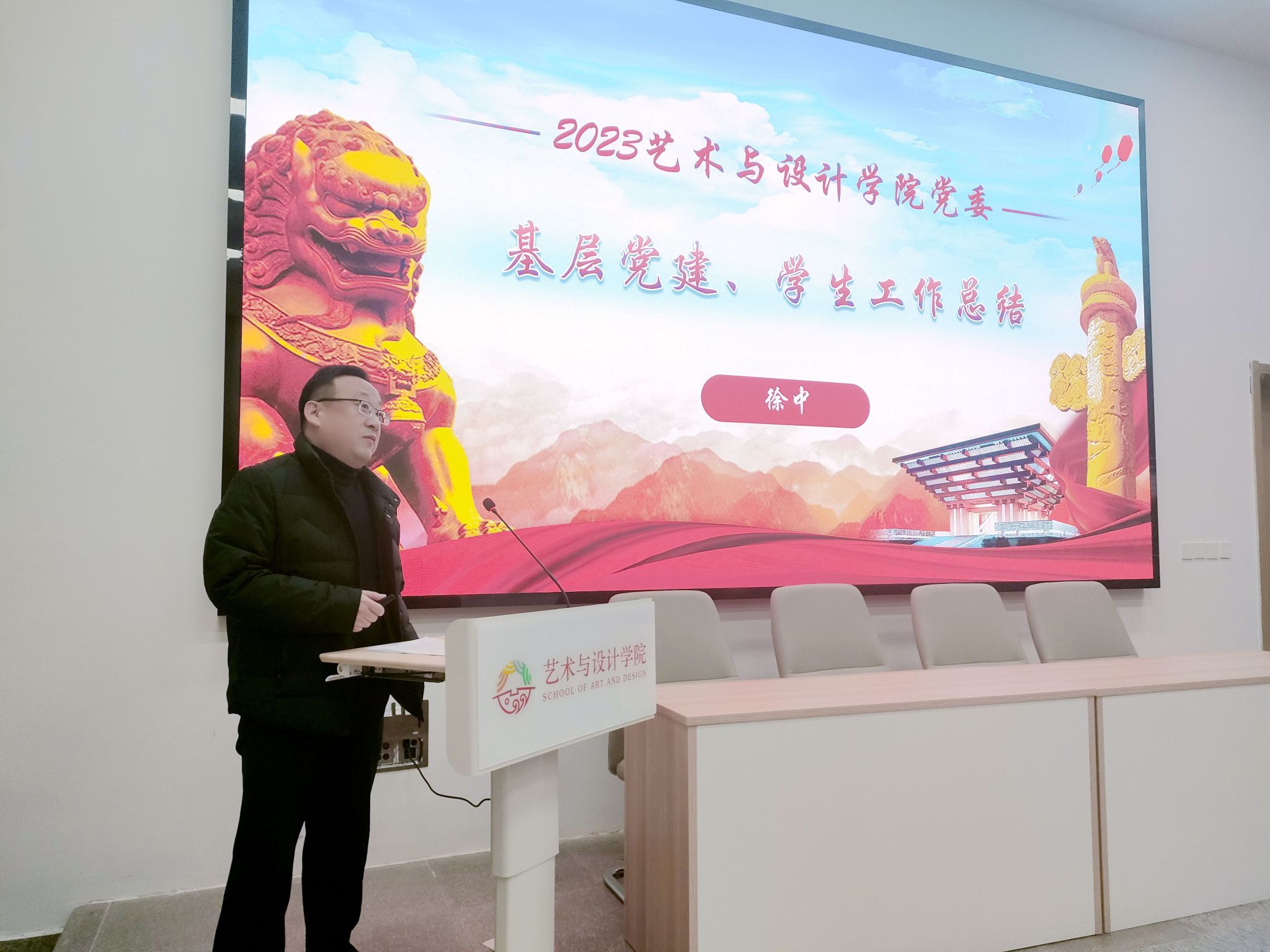 1月8日上午,艺术与设计学院召开2023年年终述职及各单位工作总结汇报会。会议对2023年各单位在人才培养工作及学生工作情况进行总结,并对2024年各单位工作计划做了汇报。艺术与设计学院院长董千,党委书记、副院长徐中,副院长马平、吴迪和综办主任、副主任、系主任、系副主任以及全体教职工参加汇报会。艺术与设计学院院长董千主持会议。