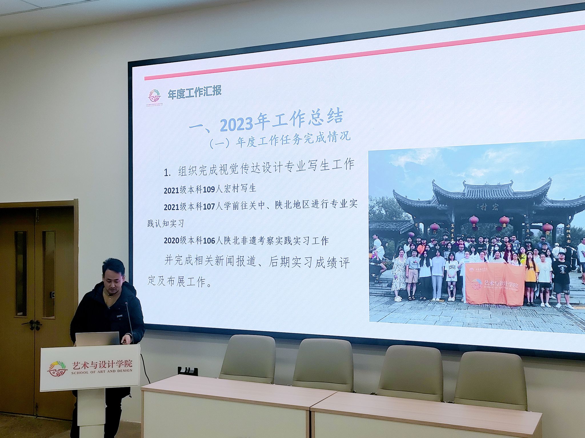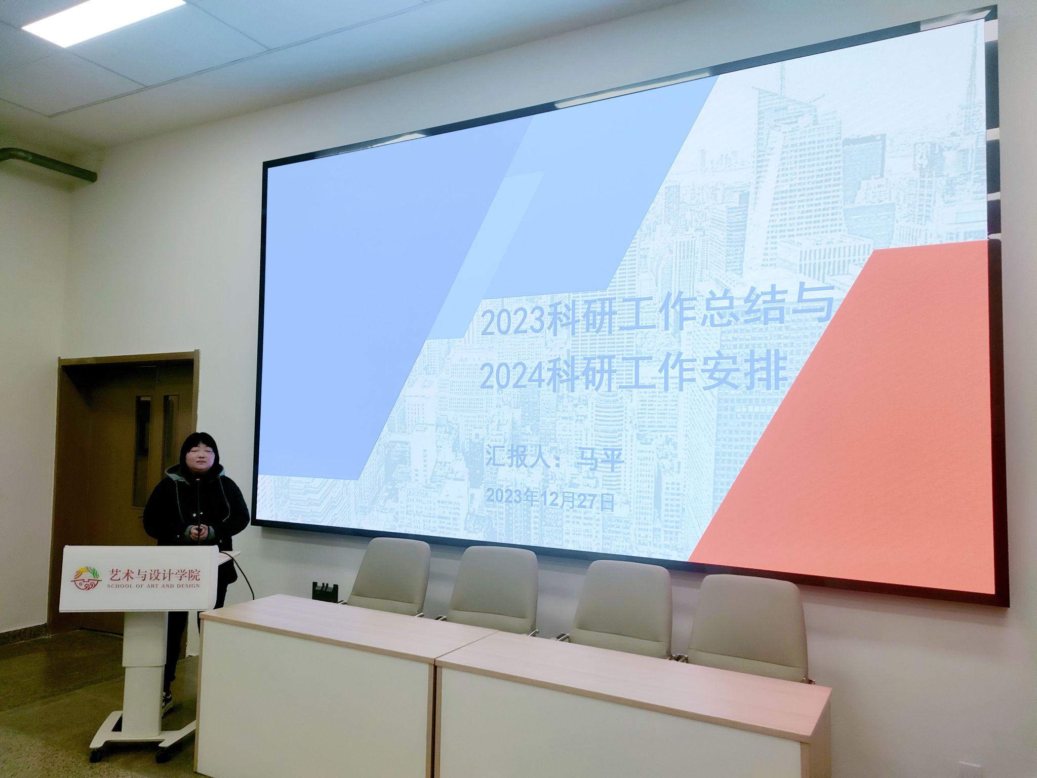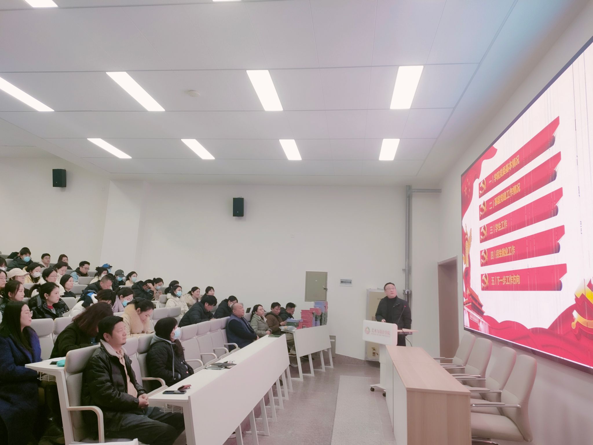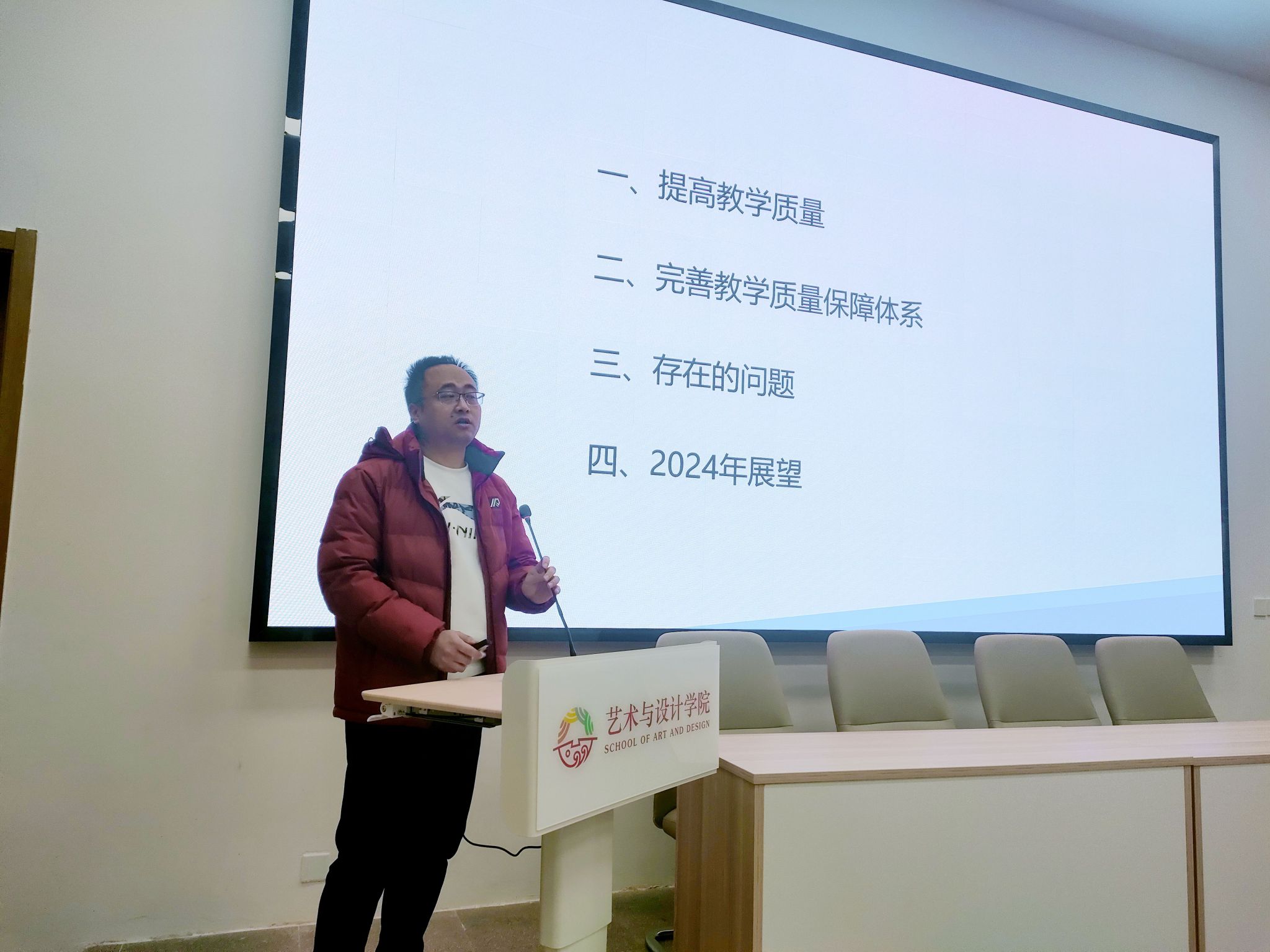 1月8日上午,艺术与设计学院召开2023年年终述职及各单位工作总结汇报会。会议对2023年各单位在人才培养工作及学生工作情况进行总结,并对2024年各单位工作计划做了汇报。艺术与设计学院院长董千,党委书记、副院长徐中,副院长马平、吴迪和综办主任、副主任、系主任、系副主任以及全体教职工参加汇报会。艺术与设计学院院长董千主持会议。