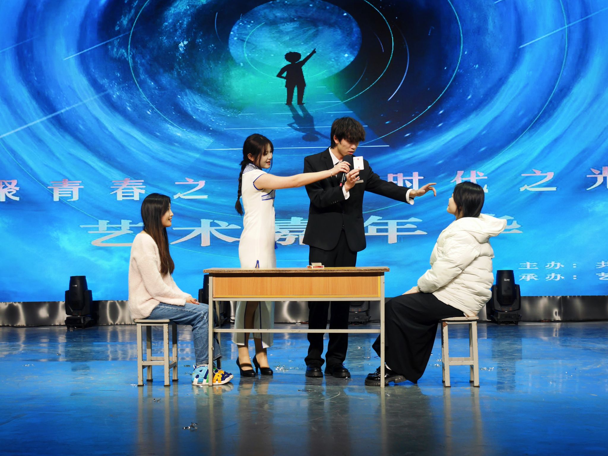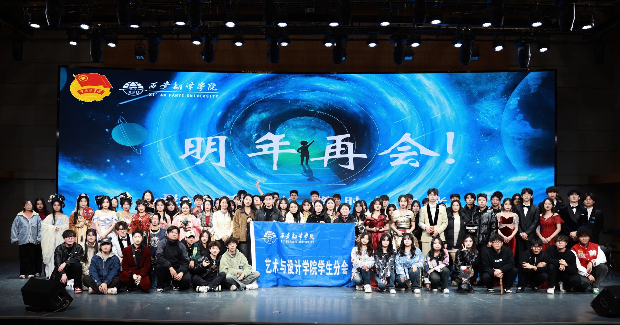 12月18日晚,由共青团西安翻译学院委员会主办,艺术与设计学院学生会承办的“聚青春之火,燃时代之光”第七届艺术嘉年华文艺晚会在科技楼演播大厅隆重举行。莅临本场晚会的领导及嘉宾有西安翻译学院校团委副书记岳蓓,英文学院团总支书记闫丽洁、团总支副书记任珂、国际商学院团总支书记苏云鹤、团总支副书记闫斌、文学与传媒学院团总支副书记苏津津、护理与康复学院团总支书记赵晓晓、体育学院团总支书记陈楠、艺术与设计学院综合办副主任王瑛及艺术与设计学院部分老师和辅导员代表。