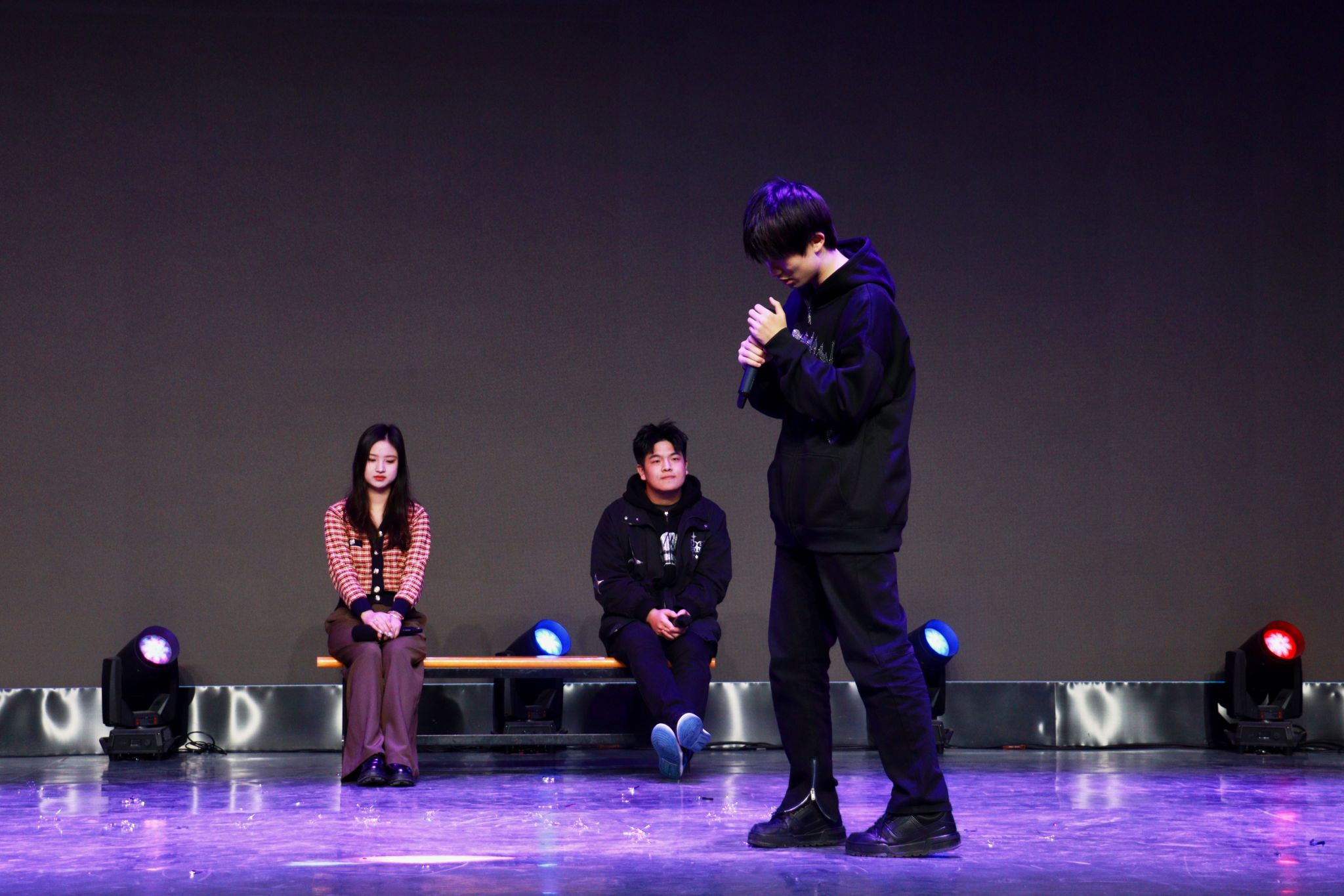 晚会在动感十足、热情洋溢的开场舞中拉开帷幕,充满节奏感的舞蹈,俏皮甜美的笑容和酷飒有力的动作,伴随着热情似火的音乐,现场气氛逐渐升温。梅山七圣乐队带来了摇滚歌曲《再见杰克》,在全场高燃的氛围中让大家感受到要以积极向上的态度去乐观地生活,去勇敢地追求自己的幸福和梦想。情景剧《红色信使》通过演绎一段动人的故事,将全场观众带回了那个令人铭记的岁月,展现了中国共产党艰苦奋斗的革命精神,激励大家要像共产党前辈们一样,为社会进步贡献出属于自己的一份力量。《红色朗诵》以朗诵的方式传承爱国精神,字里行间流露出对中国共产党的无限热爱,极富感染力的舞台表现传递出西译学子对党的美好祝愿。
