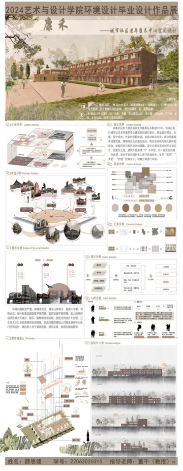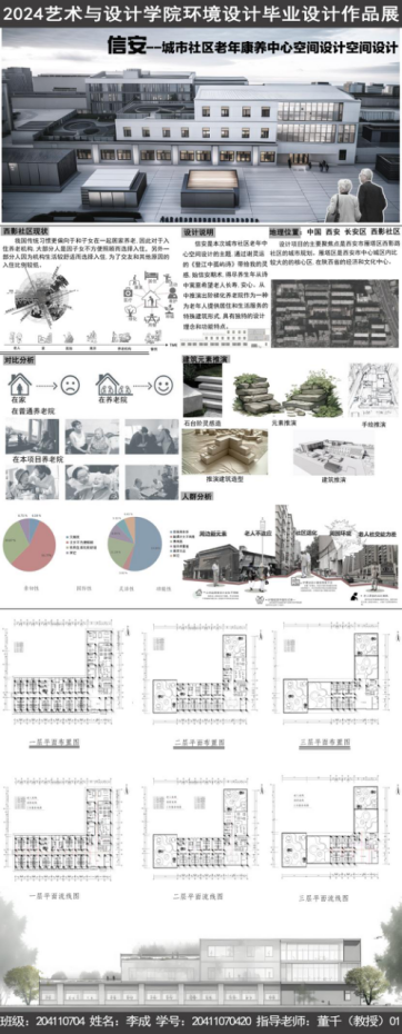 项目是在对西影路社区规划方案进行分析、研究和总结,探索适应当地特色的室内设计表达方法,并提出适用的制度策略、完善的基础设施以及合理的人流线。设计中,我对总体规划设计和创新建筑形式的工作进行设计。重点规划兴建一个养老院,改善老年人的护理和居住服务。研究养老院,关注老年人的幸福感和生活质量。研究养老院的设计、管理和服务模式,有助于探索如何提供更舒适、养老院作为提供长期护理服务的重要机构在中国社会中扮演着越来越重要的角色。在安全、关爱的养老环境,让前来养老院的老人们在学习和快乐中,体验不同养老院建筑形式创新变化所带来的魅力。