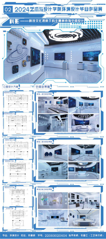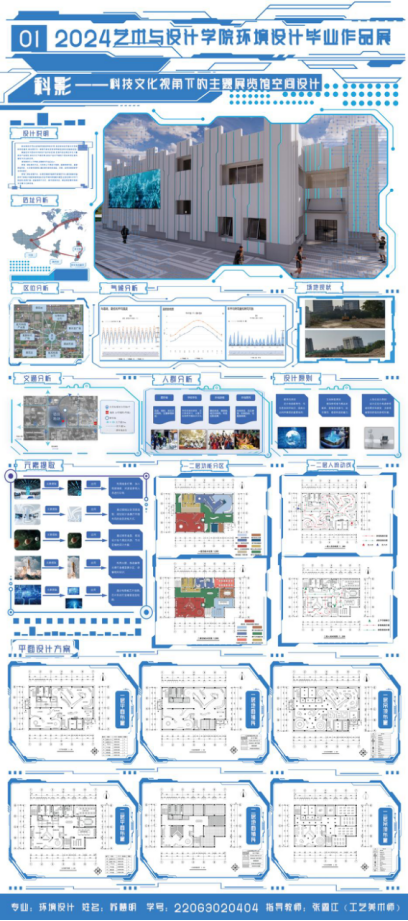 此次艺术与设计学院的毕设创作以“向未来”为主题,包括环境设计专业、数字媒体艺术专业、产品设计专业、视觉传达设计专业共计542人次参加此次展览。在这个充满创意与激情的世界里,我们鼓励学生勇敢地去探索、去感受、去表达属于他们的美好未来。在“向未来”中,它可以是来自环境设计专业的同学对人居环境问题的思考,也可以是数字媒体艺术专业同学对艺术与未来科技的憧憬与结合;它可以产品设计专业同学对美好生活无限的遐想与创造,也可以是视觉传达设计专业同学对世界充满想象的表达。