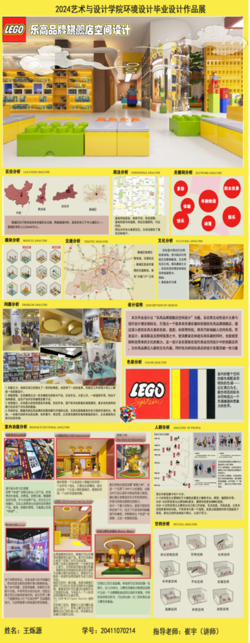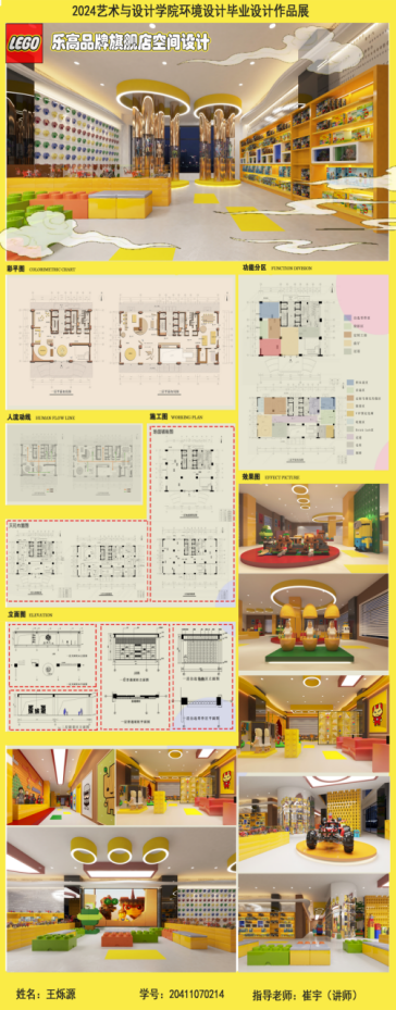 本次设计旨在从环境设计专业角度出发,打造乐高品牌旗舰店的空间设计。通过对乐高元素的提炼与再创新,结合现代设计手法,营造出具有互动感的乐高购物环境。在设计中注重空间布局、色彩搭配、材质选择等方面,力求让人们充满好奇和期待,从而打造一个充满乐趣和创意的购物场所与体验空间。同时,结合先进的数字技术和互动装置,为消费者提供多样化的互动体验,如虚拟试玩、DIY搭建、亲子互动等,增强消费者对乐高品牌的认知度和忠诚度。此外,设计还注重空间的灵活性和可持续性,以适应未来市场变化和品牌发展的需要。本设计旨在打造出一个既具乐高文化内涵又富有互动性的乐高旗舰店空间,以期为数字技术互动方式与现代商业空间的融合提供新的思路。