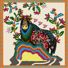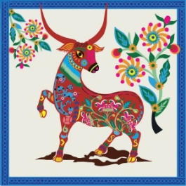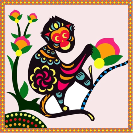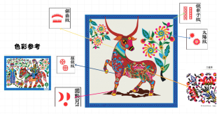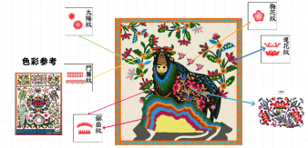 创作表现:本作品主要是以剪纸的形式对动物的外轮廓进行提取和表现,以表现动物的特点;同时融合库淑兰剪纸的色彩搭配,利用饱和度高的颜色,展示整个画面的生动与活泼,体现动物的生机,同时利用动物特征与给人的感觉进行颜色的搭配;最后加以库淑兰剪纸纹样的填充,使动物形象更加生动,创作出具有地域特色的文创作品。