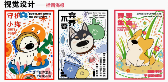 创作表现:本作品以保护动物为创意点,以标志、主题元素创作等进行文创设计。狗不但是人类最忠诚的朋友,也是人类最好的帮手。作品表达了作者对狗狗的喜爱之情,同时希望人与动物能够和谐相处。