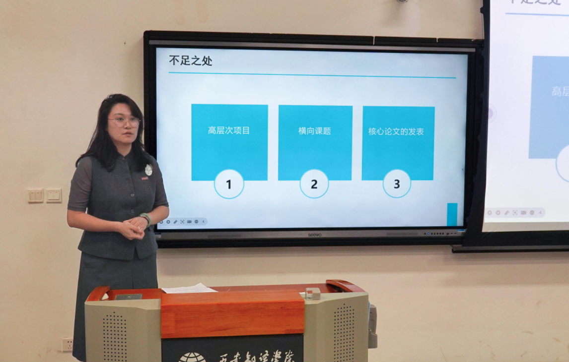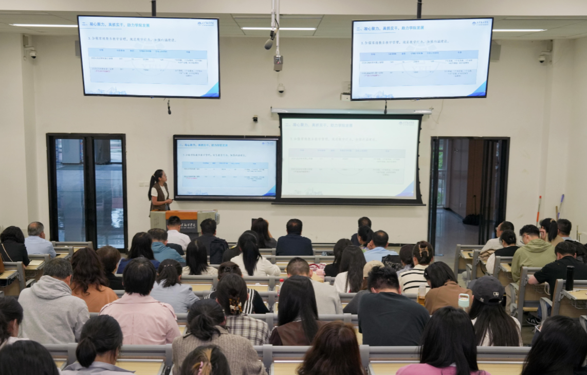 随后,科研副院长刘杨就科研与工作规划作交流发言。她全面总结了前期科研工作的成效与不足,明确了本学期科研重点,并部署近期任务:引导教师精准定位研究方向,推动跨学科团队建设;提前启动高层次项目申报准备工作,为科研突破夯实基础。刘杨副院长指出当前科研工作中存在的短板,如横向课题合作力度不足、高水平论文产出有待提升等,希望全体教师针对性改进,共同推动科研工作提质增效。