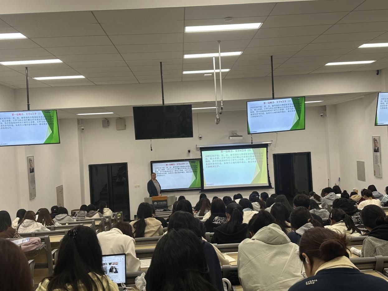 讲座中,任彦钧教授从汉字的起源、发展、影响和传播谈起,结合文字学领域最新观点,以生动案例解读其中蕴含的古人生活智慧与处世哲学,将汉字从“交流工具”升华为“文明载体”,让听众透过笔画触摸中华文明基因。同时,任教授还结合自身研究经验,将汉字文化解读与阅读写作实践相融合,为师生提供文化学习与文字运用的方法论,兼具学术深度与实用价值。现场互动频繁,师生纷纷表示,讲座不仅重塑了对汉字的认知,更激发了传承传统文化的热情。