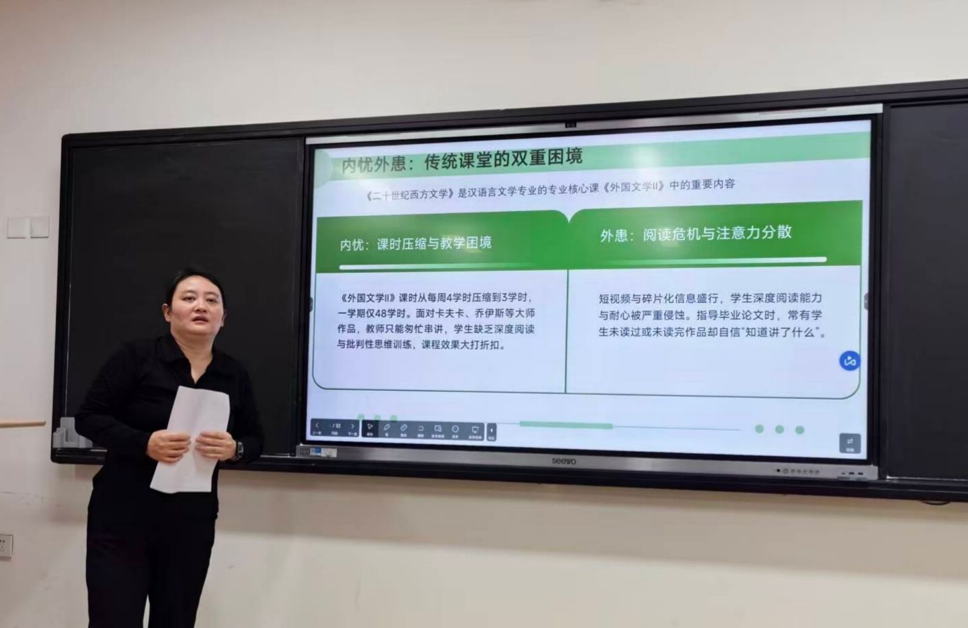 会议首项议程由刘卓副教授主讲《一门线上金课的诞生:我们的思考、踩过的坑和收获》专题讲座。刘卓老师主持的课程《二十世纪西方文学》于2025年8月入选第三批国一流课程公示名单。结合这门课程,刘卓老师从课程建设的缘起与思考、诞生过程、收获与成效、踩坑与反思四个方面进行了系统总结,全面分享了线上金课建设的完整历程。