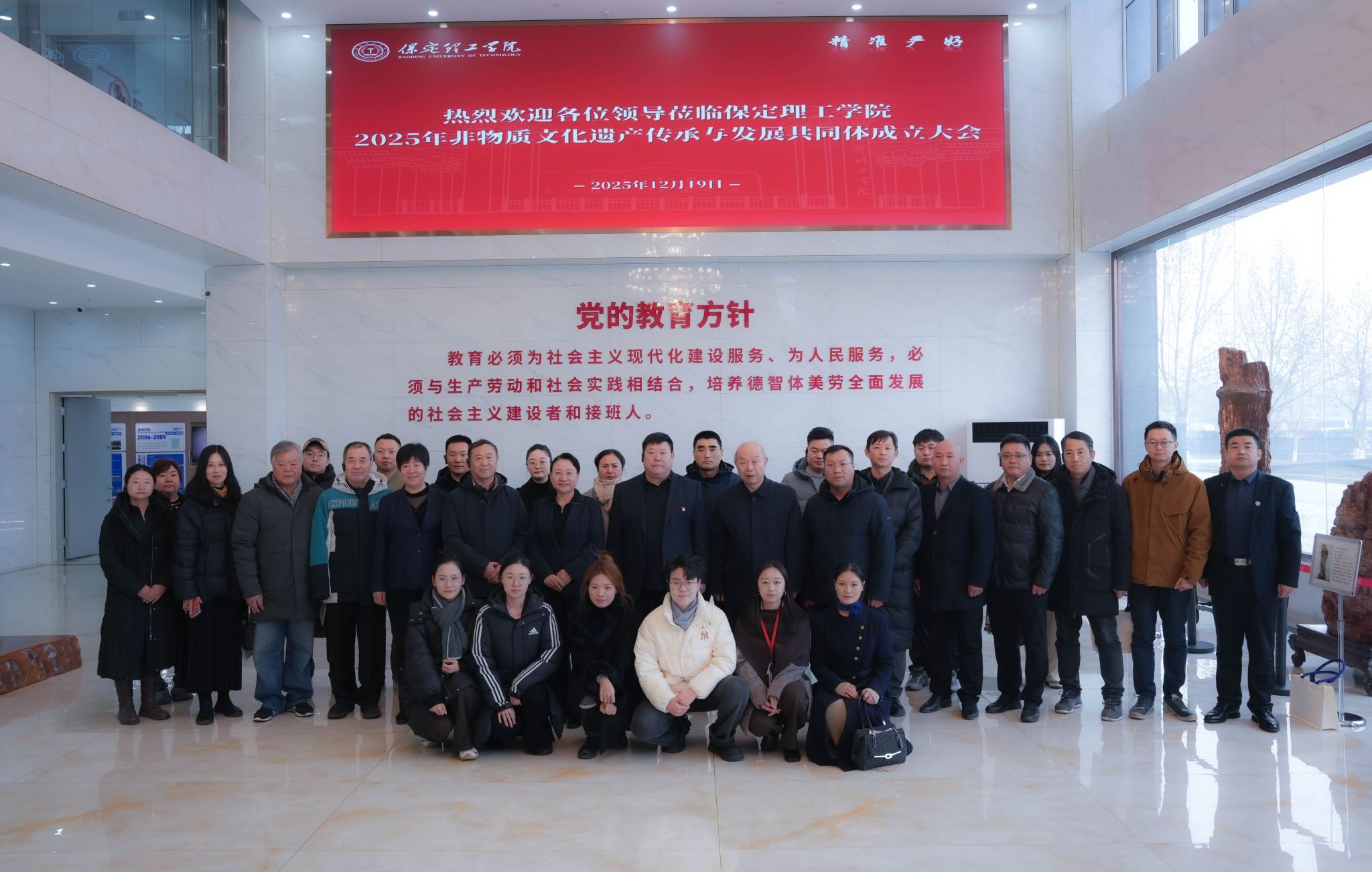 为积极响应国家文化强国战略,深化非物质文化遗产的系统性保护与创新性发展,构建多元协同的传承新格局,探索高校赋能非遗传承发展的创新路径,由保定理工学院发起,国内十几个高校、企业和政府相关部门参加的“非物质文化遗产传承与发展共同体”2025年12月19日在保定成立,会议宣读了《非物质文化遗产传承与发展共同体章程(草案)》,14 位来自政府、高校、企业及非遗传承领域的代表共同启动“非物质文化遗产传承与发展共同体”成立仪式。我院非遗研究院院长亢西民教授出席成立大会,并作主题发言;我校作为发起参与单位之一,成为副理事长单位。来自国内兄弟院校、知名文化企业、地方政府事业单位、非遗传承大师等数十名专家、学者、代表和保定理工学院数百名师生齐聚一堂,共同见证这一兼具里程碑意义的重要时刻。