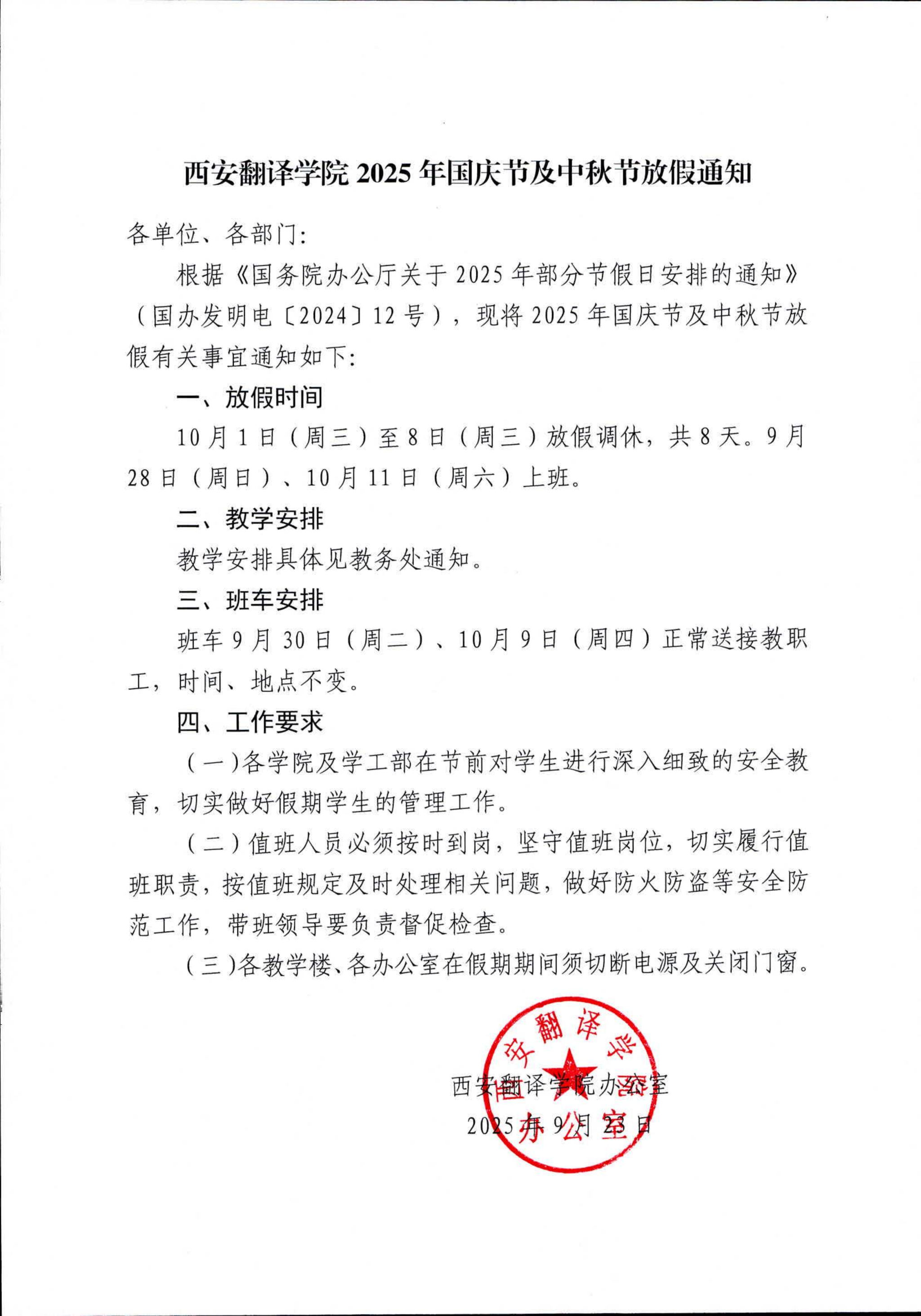 文学与传媒学院2025年国庆节及中秋节放假通知