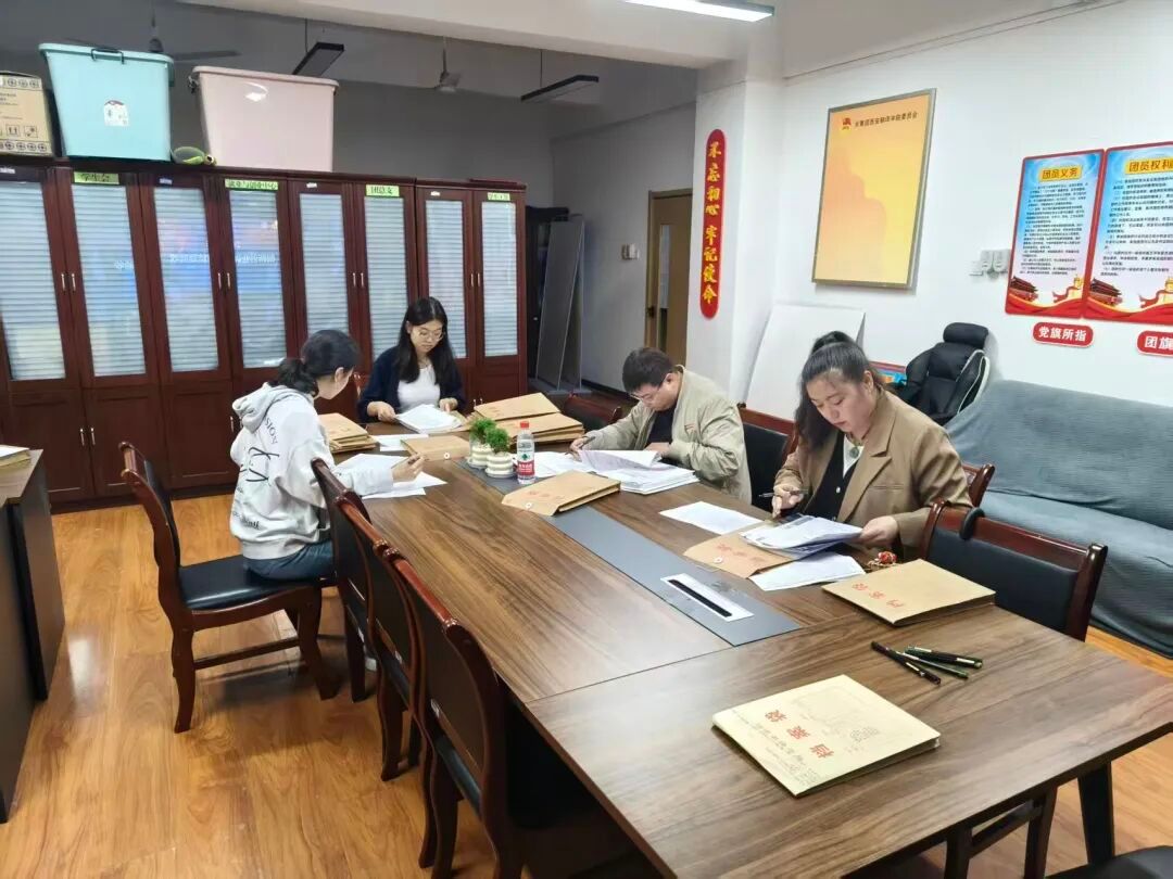 验收现场,老师们围坐于摆满项目档案袋和相关文件的长桌旁,逐一查阅项目资料。从项目的创新点、实施过程到成果效益,每一个环节都经过了认真核查。他们严谨的态度确保了对每个项目的评估都专业精准、不走过场,确保整场验收工作有序稳健进行。