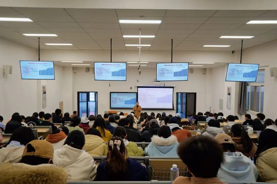 讲座中,张芳老师结合当前就业形势,指出2025届高校毕业生达1222万,2029届仍处于就业高峰,全国应届生与往届未就业人群共同加剧竞争压力,考公考编竞争比例高达1:300-1:400。针对这一现状,她从“认识自我、认识时代、知行合一”三个核心维度展开讲解。在自我认知层面,她提出需从性格、能力、价值观出发,通过“四步曲”挖掘个人优势,打造专属IP,同时鼓励同学们跳出舒适圈,直面挑战实现成长;在时代认知部分,她分析了流量为王、AI崛起、知识爆炸的时代特征,强调00后学生需发挥自身优势,弥补现实感弱、抗挫力不足的短板;在实践路径上,她建议同学们结合升学、考公、就业等多元方向合理规划,发展“骨灰级爱好”,打造T型人才特质,同时充分利用寒暑假实习与学校资源积累经验。