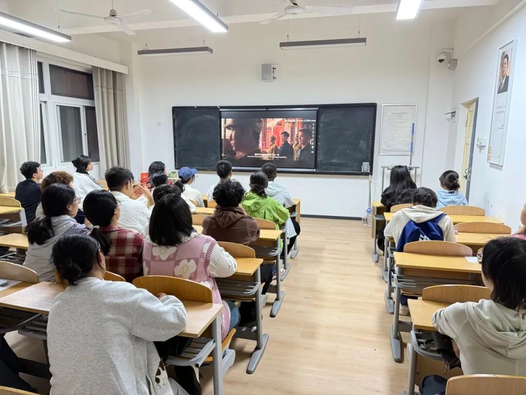 活动伊始,同学们共同观看了精选的红色经典影片片段。荧幕上,革命先辈们为民族存亡、人民解放而浴血奋战的壮阔史诗徐徐展开,他们展现出的不畏强暴、血战到底的英雄气概和百折不挠的必胜信念,深深叩击着每一位同学的心弦。观影现场秩序井然,同学们神情专注,随着剧情推进,时而眉头紧锁,时而眼含热泪,完全沉浸在那段波澜壮阔的历史记忆中。光影流转间,历史的厚重与先烈的崇高跨越时空,深深烙印在大家心中。