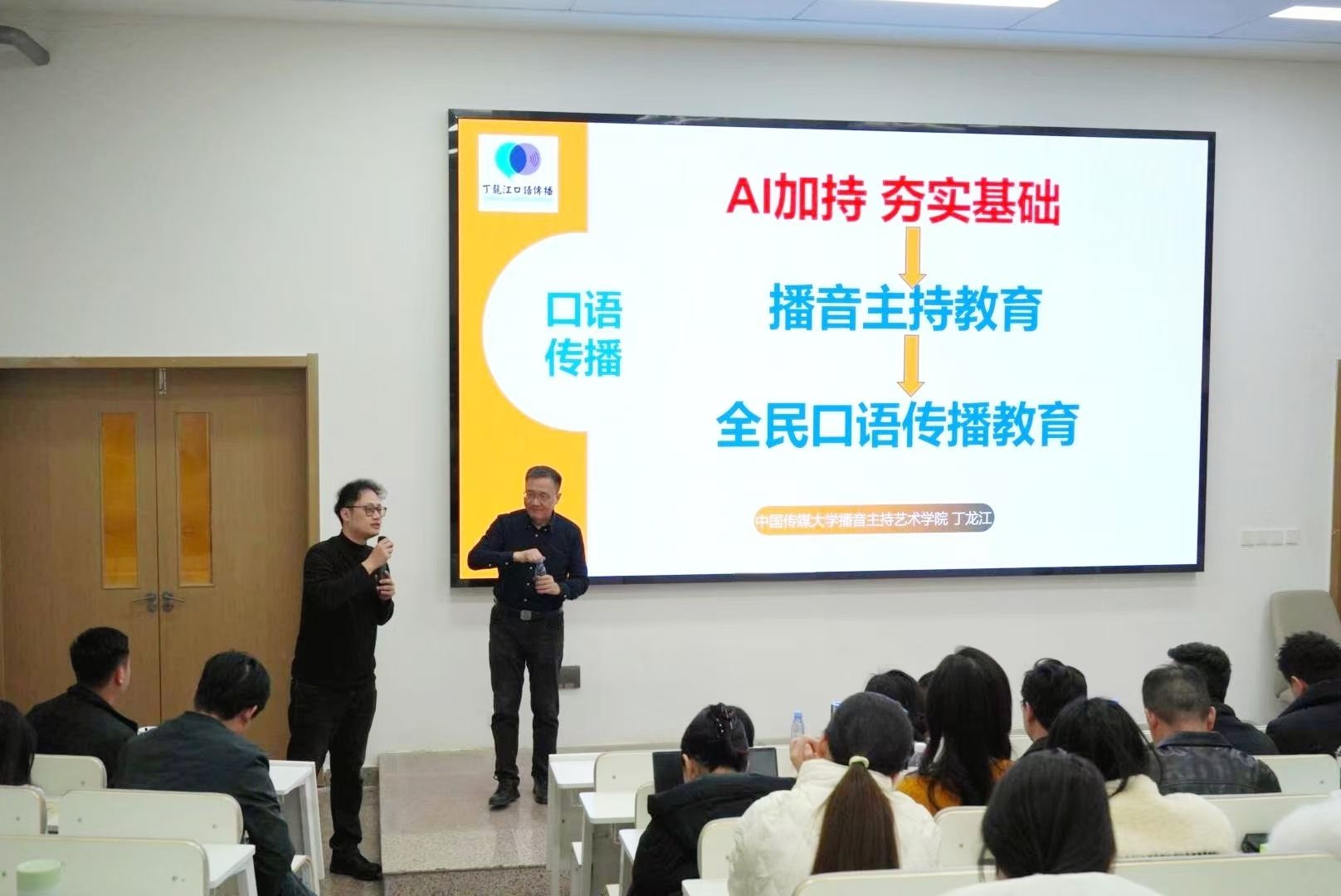 讲座伊始,丁龙江教授以自身丰富的行业实践与教学经验为切入点,直指当前播音主持教育面临的时代困境。他指出,在AI技术飞速发展、媒体形态持续迭代的今天,传统播音主持教育存在知识体系更新滞后、实践训练模式固化、应对行业变化能力不足等问题,“如果再不抓住所有可能性往前快速奔跑,播音与主持艺术专业未来堪忧”。这番话既点出了播音与主持艺术专业发展的紧迫形势,也引发了在场师生的深度思考。