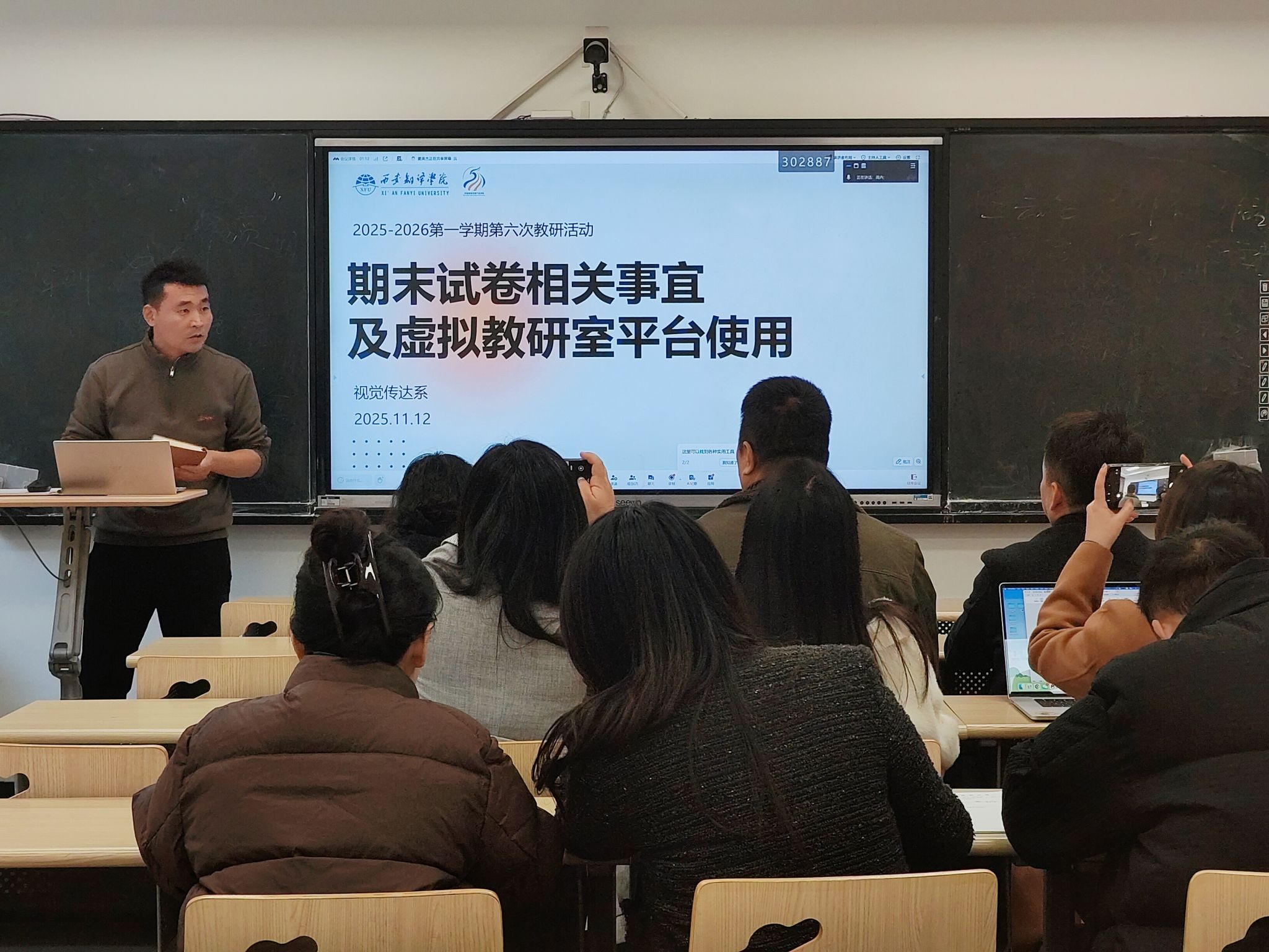 为响应学院期中教学检查工作部署,推动教学资源数字化、教研活动线上化,本次活动也安排了虚拟教研室平台使用培训。窦英杰详细演示了平台核心功能与操作流程,包括教学资料上传、在线教研讨论、教学成果展示等模块的使用技巧。他强调该平台是教师交流协作、共享优质资源的重要载体,要求全体教师尽快熟练掌握操作,积极参与线上教研,助力教学提质增效。