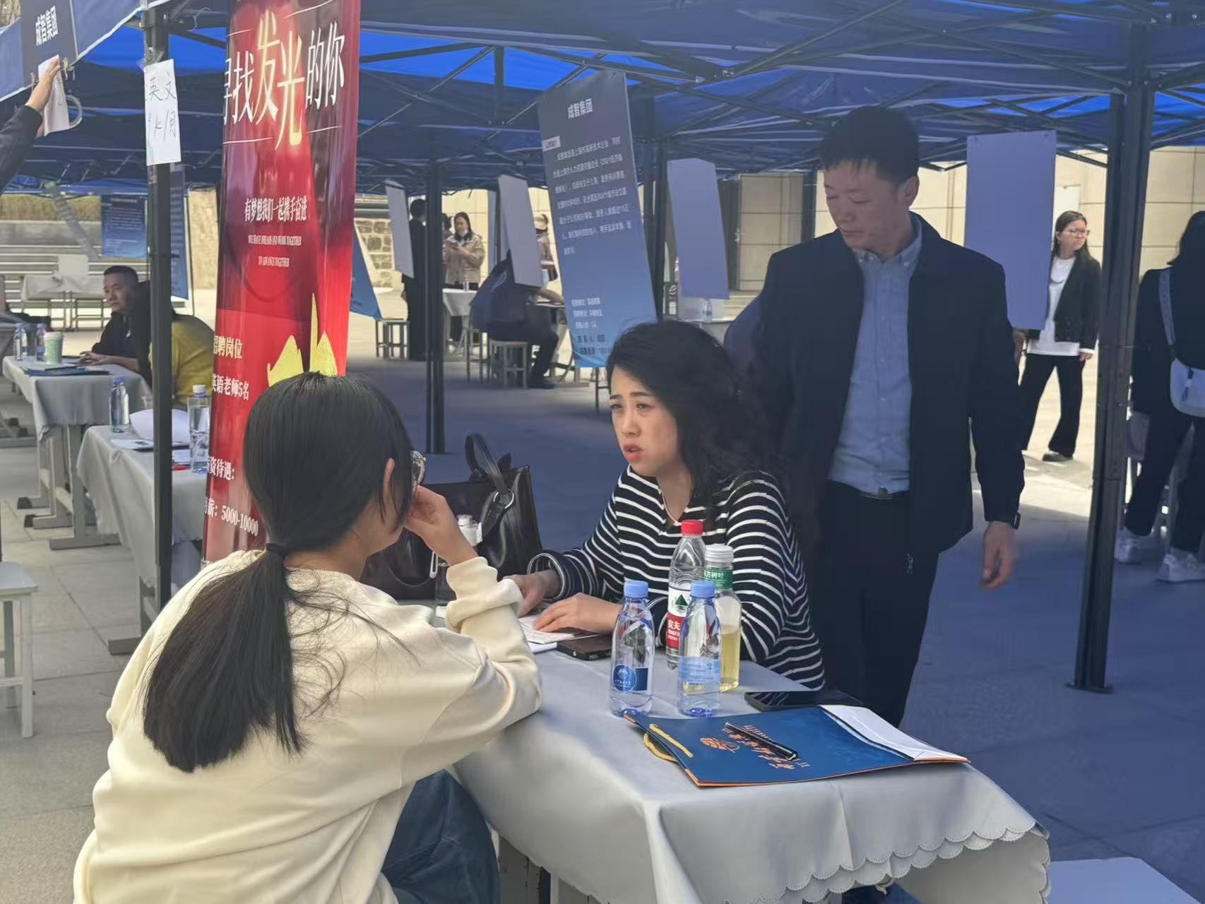 为更好地服务学生,大学生就业创业指导服务中心特设了“简历门诊”专区,提供专业简历修改建议;同时,学工部也开设了“西部计划”和“征兵政策宣传”专区,为学生提供了全方位、多层次的就业指导和政策信息。教育学院辅导员们在现场也积极与企业建立联系,为他们提供必要的服务与支持,促进了双方之间的深入交流与合作。
