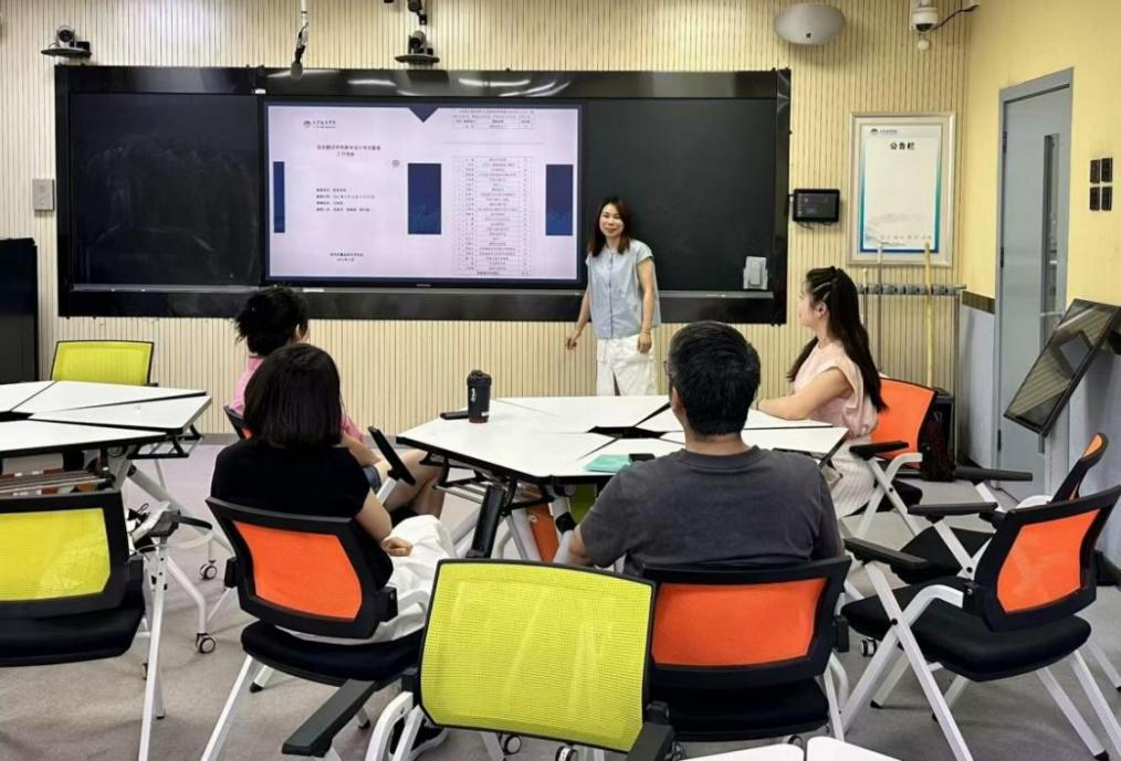 培训归来后张鹤老师、黄俊君老师,组织教研室的老师们将会议精神及优秀的教学案例与诸位老师进行分享和学习。