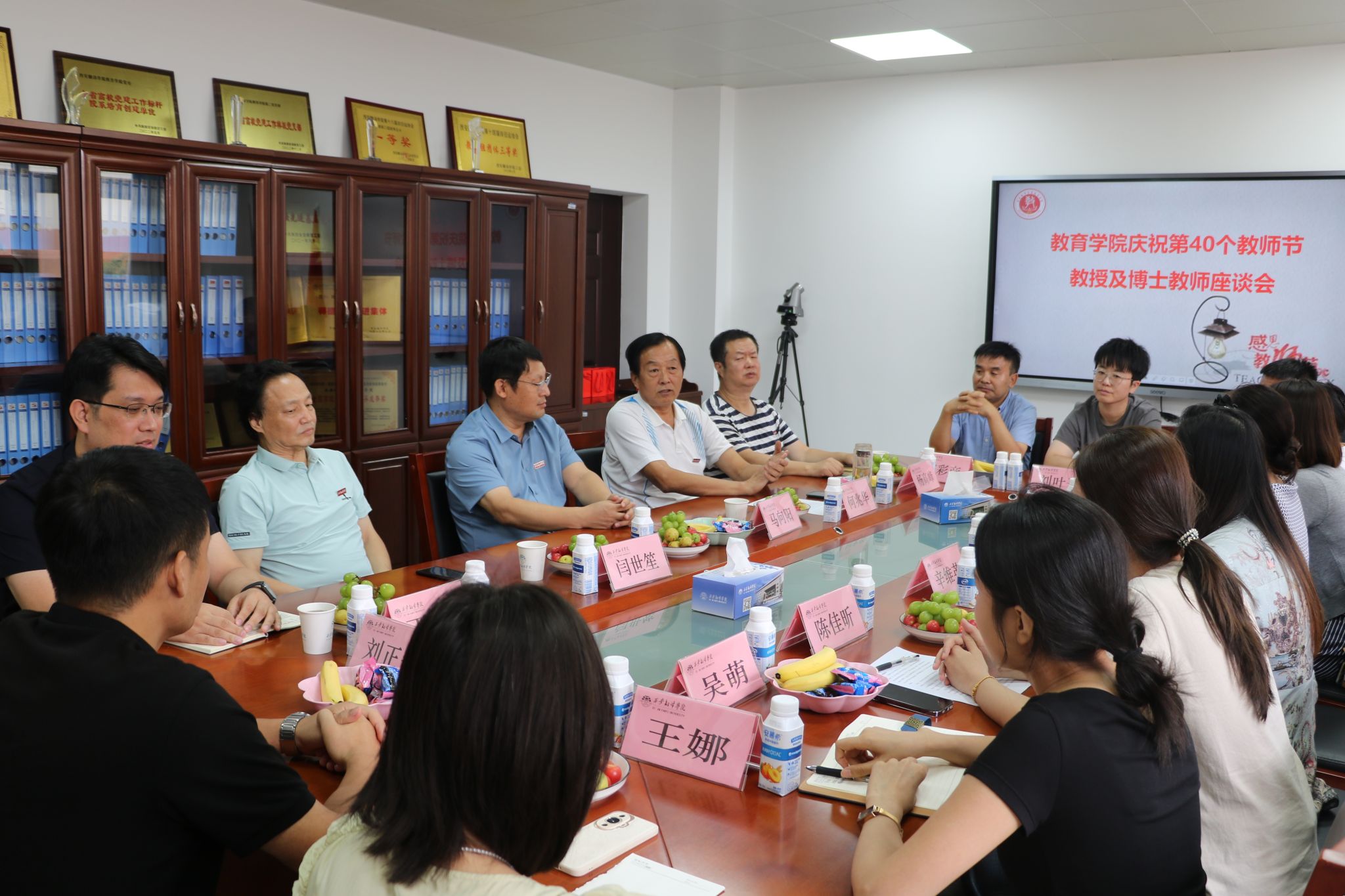 为庆祝第40个教师节,教育学院于9月10日在八号教学楼会议室举办教授、博士座谈会,纪委书记、人力资源处处长马向阳出席会议。院长何兆华,副院长庞小佳、辛维英,首席教授闫世笙,教授杨高峰,综合办主任、副主任以及院内博士参会。会议由何兆华院长主持。