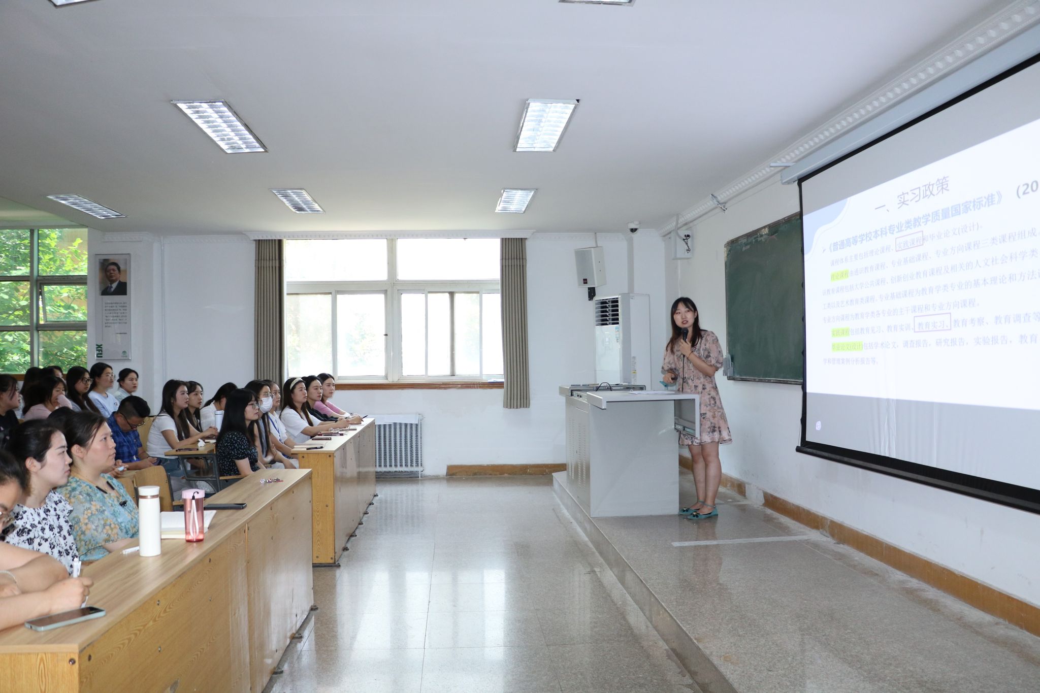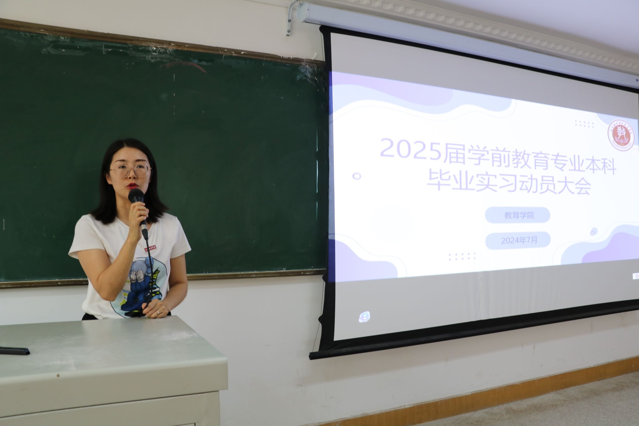 为切实规范学前教育专业毕业实习工作,增强教育实践育人价值,进一步落实“学生中心、产出导向”理念,学前教育系于2024年7月2日12:30在八号楼8316教室召开2025届本科学前教育专业毕业实习动员大会。教育学院综合办主任刘正安、综合办副主任张改宁、学前教育系主任黄玉芳、学前教育系副主任杜赟、美育教学中心副主任赵梓涵、学前教育系全体教师和全体学生参加了此次大会,大会由王聪老师主持。