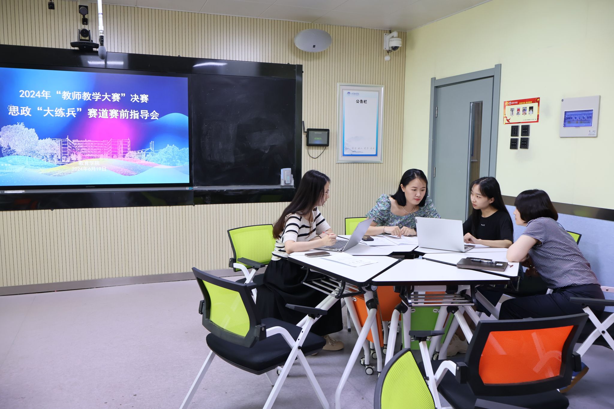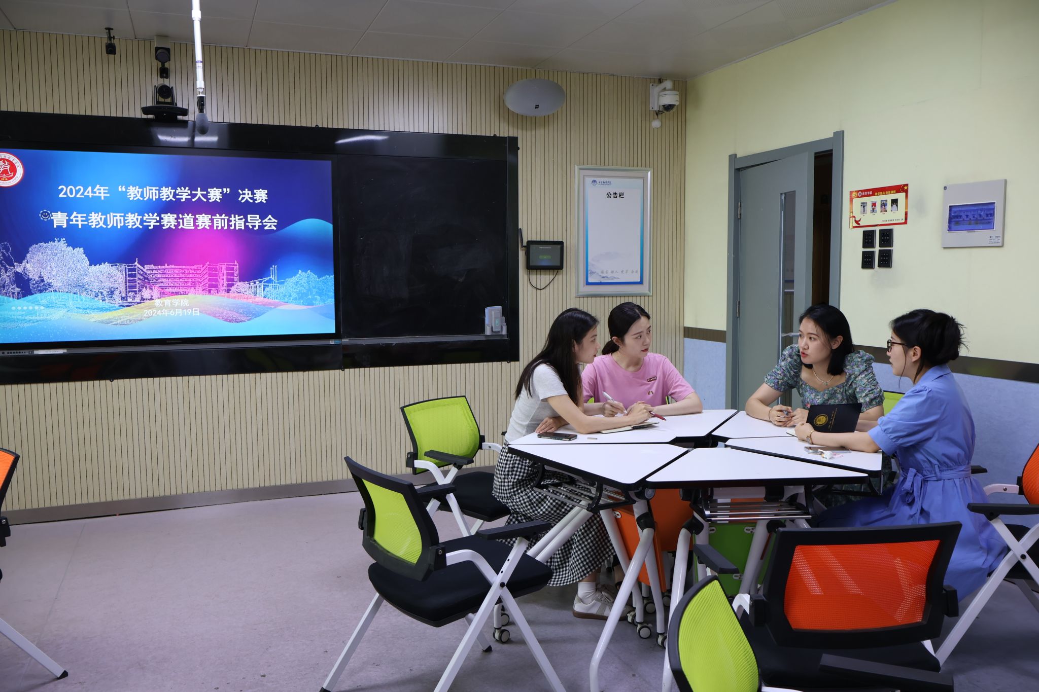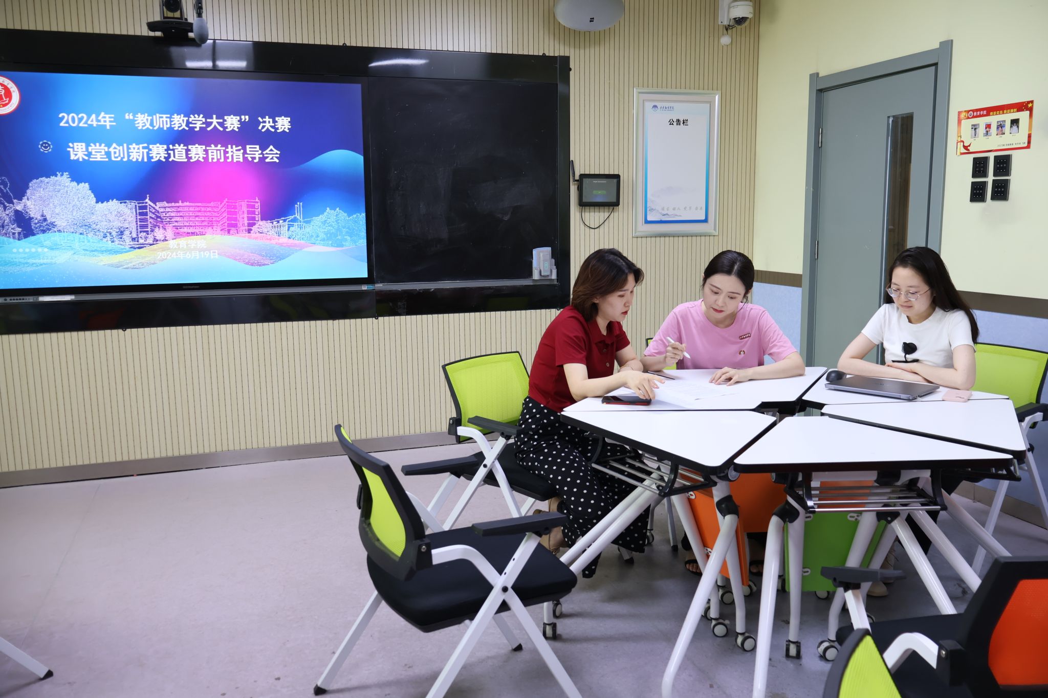 为了进一步提升教师教学技能,6月19日下午,教育学院在八号楼8314教室举办了2024年“教师教学大赛”校级决赛赛前指导会。指导会分为课堂创新赛道、思政“大练兵”赛道、青年教师教学赛道三场。教育学院美育教学中心副主任赵梓涵、专职教师胡媛媛为即将参加“教师教学大赛”校级决赛的七位教师分赛道进行了赛前指导。赵梓涵老师获得了第五届陕西本科高校教师教学创新大赛新文科赛道二等奖,胡媛媛老师获得了2023年度陕西高校思政课程思政“大练兵”一等奖以及第五届陕西省高校青年教师教学竞赛文科组三等奖。两位老师结合自身参赛经验,为参赛教师提出了建设性建议。