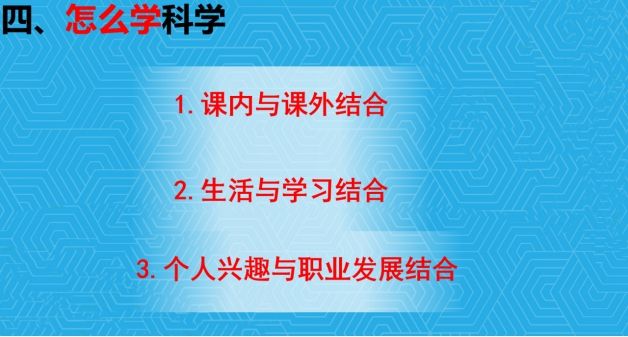 科学方向的宣讲教师陈彩彦为同学们介绍了科学课程模块学习内容。陈老师从科学学习的背景出发,介绍了科学是什么,小学教育阶段的科学学习内容,进而介绍了科学模块课程的设置,最后从三个方面帮助学生简单梳理了科学学习的思路。科学是拓展学生知识面的学科,学生通过科学模块的学习为自己未来的教师职业选择多一个机会,希望同学们客观考虑自己的学习情况,做出适合自己的方向选择。