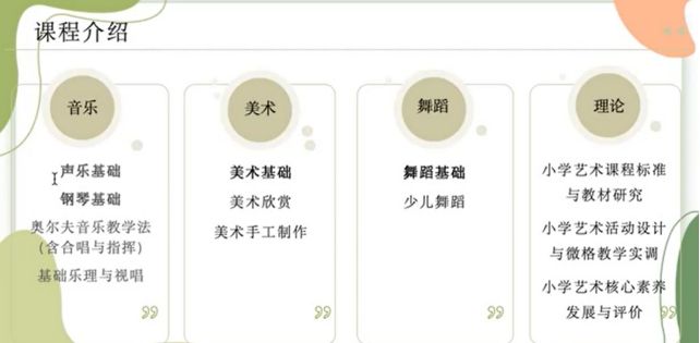 艺术模块的宣讲教师马艺迪从专业艺术模块开设的主要目的和艺术模块的课程设置两个方面介绍了这个方向。义务教育阶段培养的是德智体美劳全面发展的学生,对于教师的综合素质也提出了更高的要求。马老师通过小学手工制作、奥尔夫音乐等课程的教学实况,帮助学生对艺术模块学习内容有了更加深刻的了解。艺术模块的学习是国家素质教育的重要体现,也是学生提升个人素养的过程,马老师希望同学们认真思考自己未来方向,珍惜大学学习时光。