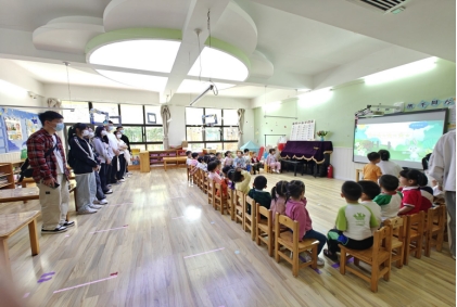 同时,学生们还在2位园长与保教主任的带领下,深度参观了幼儿园的户外环境、楼廊环境、特色区域等,熟悉了幼儿园环境的构成要素,明确了幼儿园环境创设的主旨和基本要求,更好地了解到了幼儿的学习特点和兴趣需求,这为学生理解幼儿园一线的实际情况,树立教书育人、保教并重的理念打下了坚实的基础。