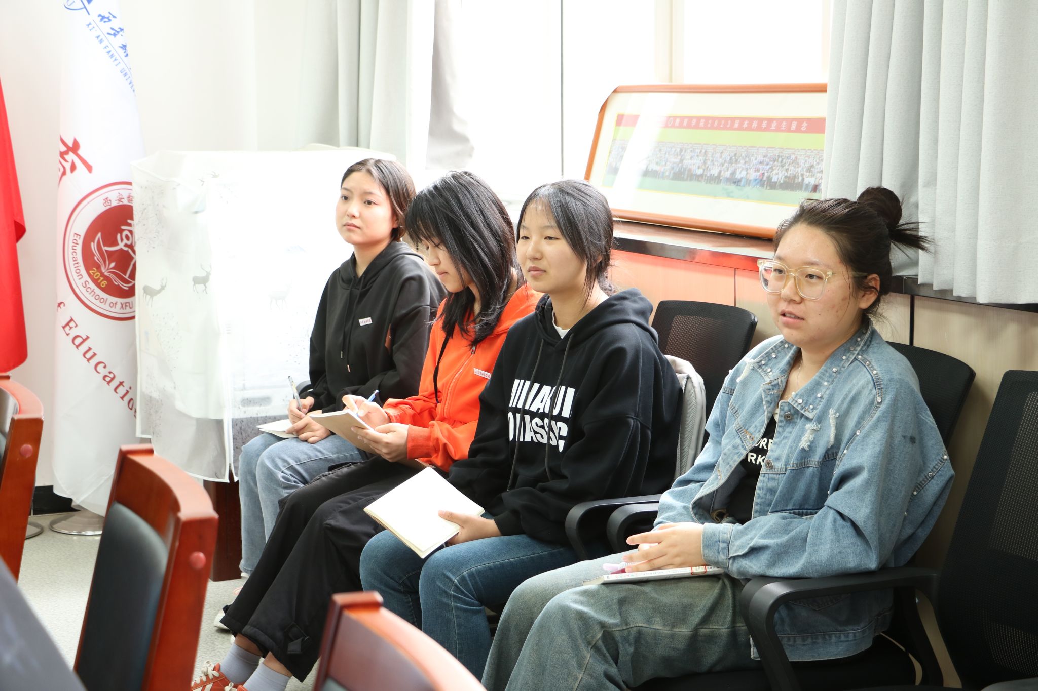 为全面了解教育学院图书资料室建设工作和师生对文献资源的借阅需求,进一步提高图书馆服务质量,2024年4月9日下午,图书馆馆长魏哲铭、副馆长侯永兴及各部室主任一行到教育学院开展图书资料室调研工作。教育学院副院长庞小佳、副院长辛维英、综合办副主任刘正安及各系师生代表参加了座谈会。
