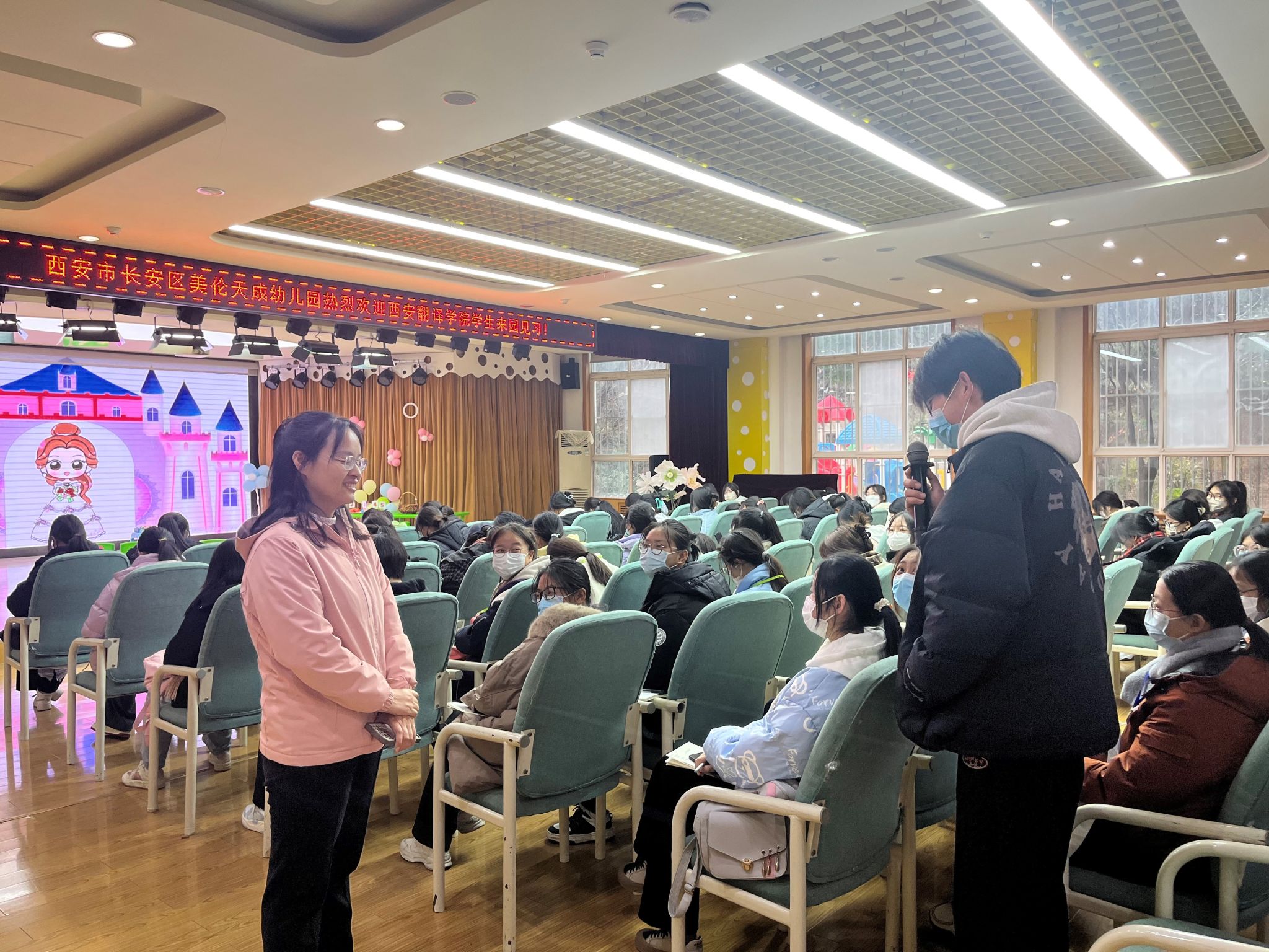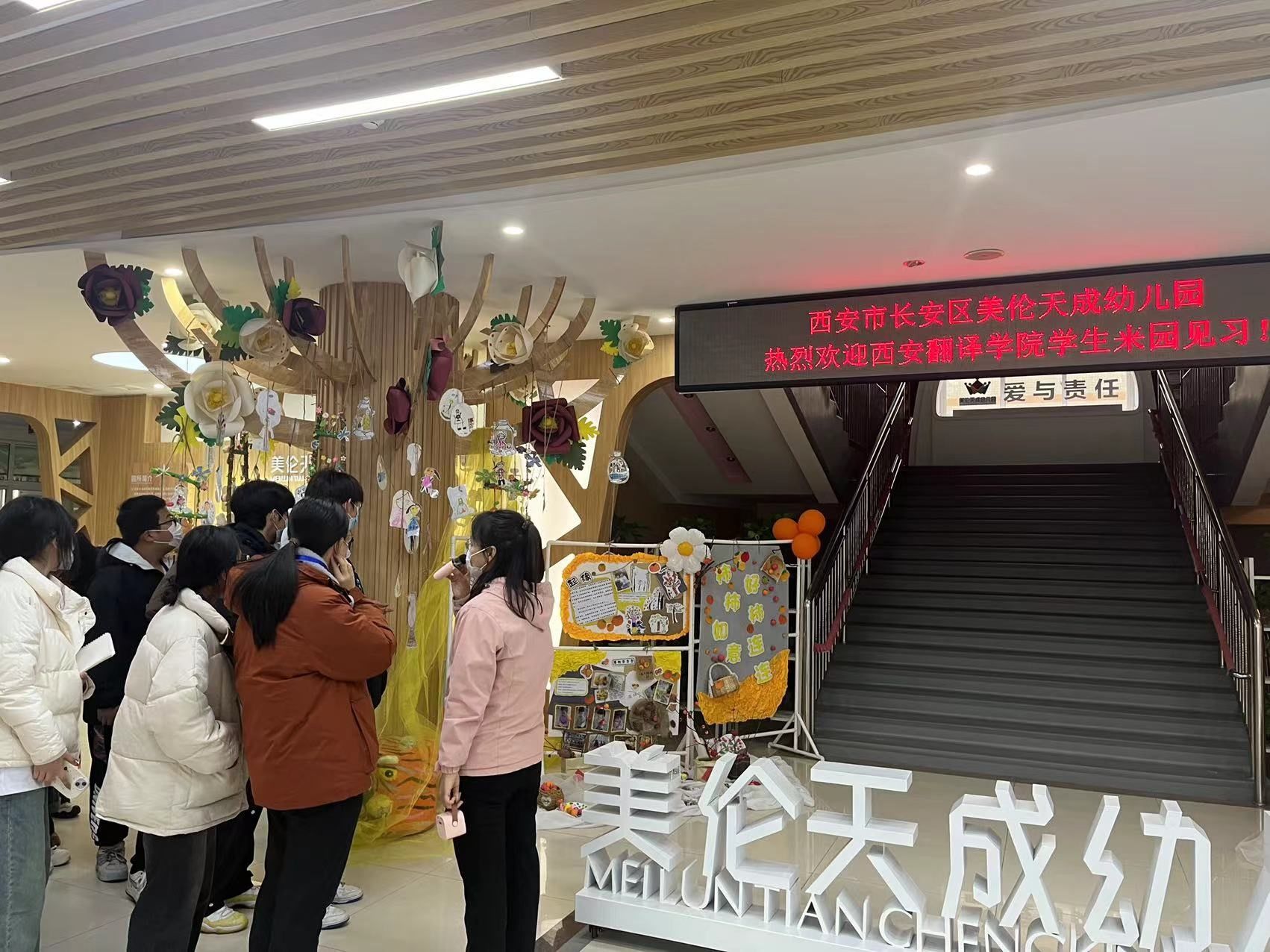 教育见习是教师专业成长的起点,也是培植与巩固学前教育专业学生核心素养的重要途径。为了解幼儿园教育与教学工作的特点,加深学生对专业理论知识的理解,提升学生的职业素养,学前教育系于2023 年12月11日至21日开展2023级,2022级,2021级本科和专科共17个班的认识实习。本次认识实习分12个批次在西安城市之光幼儿园和美伦天成幼儿园穿插进行,见习内容包括园所参观、课程观摩和交流研讨等。