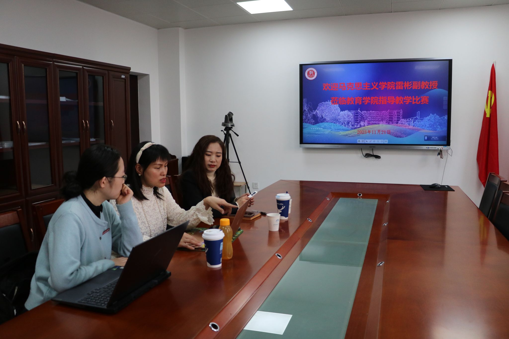 11月21日下午,我院荣幸邀请到马克思主义学院雷彬副教授为即将参加2023年陕西省思政课大练兵的教师进行赛前磨课指导。教育学院副院长庞小佳、美育教学中心副主任赵梓涵莅临本次赛前指导。