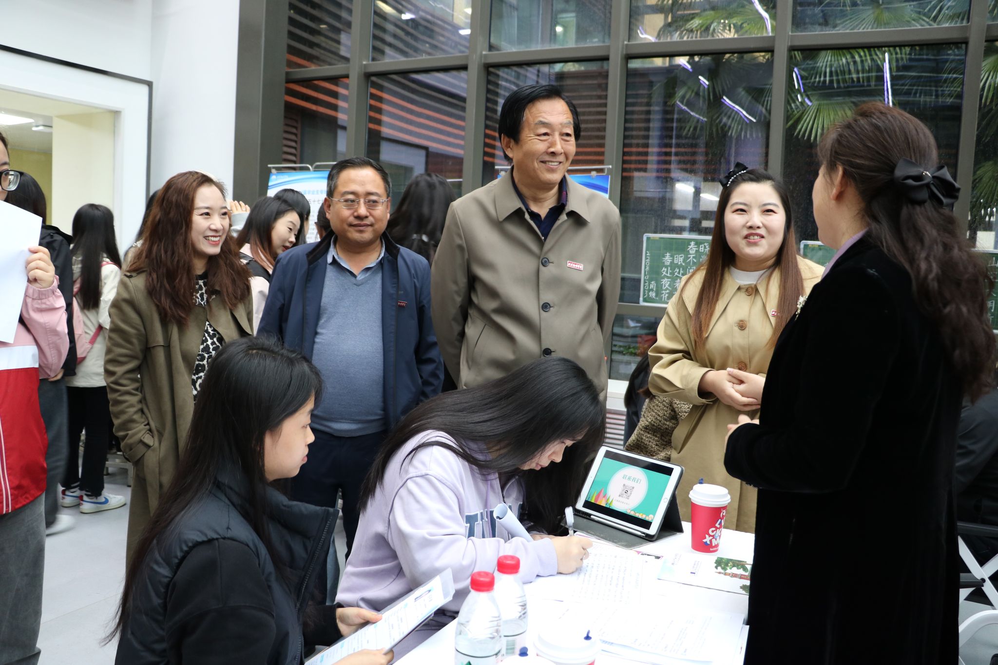 为了帮助同学们更好地了解就业市场,拓宽就业渠道,2023年11月3日上午,教育学院在八号教学楼一楼大厅举行2024届毕业生专场招聘会。大学生就业指导服务中心主任陈潇,教育学院院长何兆华,党委书记、副院长王小龙,副院长庞小佳、辛维英,综合办副主任张改宁、刘正安等领导到招聘会现场指导工作。