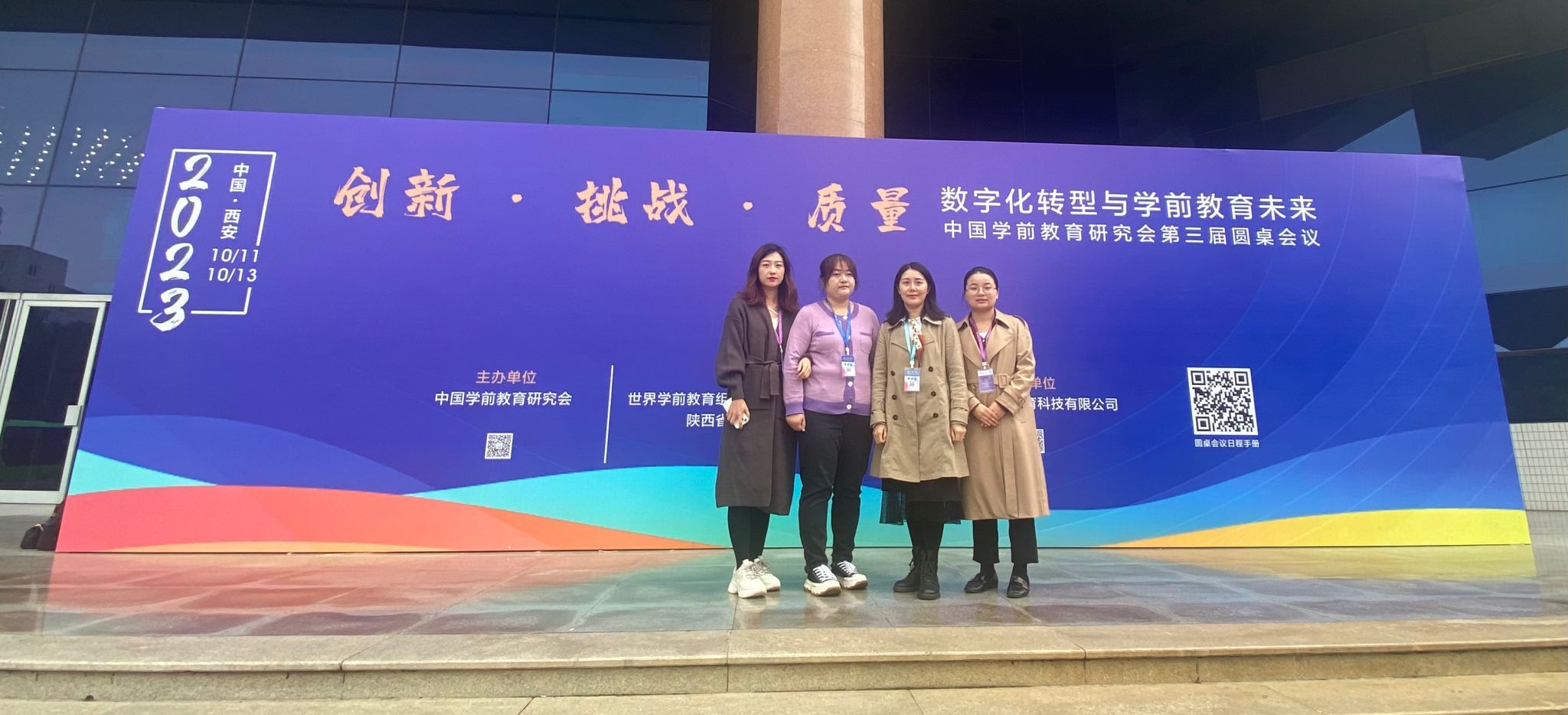 2023年10月11日—13日,教育学院学前教育系主任黄玉芳、教研室主任杨亚博、李盼盼、系主任秘书李雨池参加了由陕西省学前教育研究会承办的中国学前教育研究会“第三届圆桌会议”。大会在西安交通大学思源学生活动中心举办,以“创新·挑战·质量——数字化转型与学前教育未来”为主题。陕西省教育行政部门领导,高校知名专家、学者及研究人员,会员单位代表1000多名莅临现场。