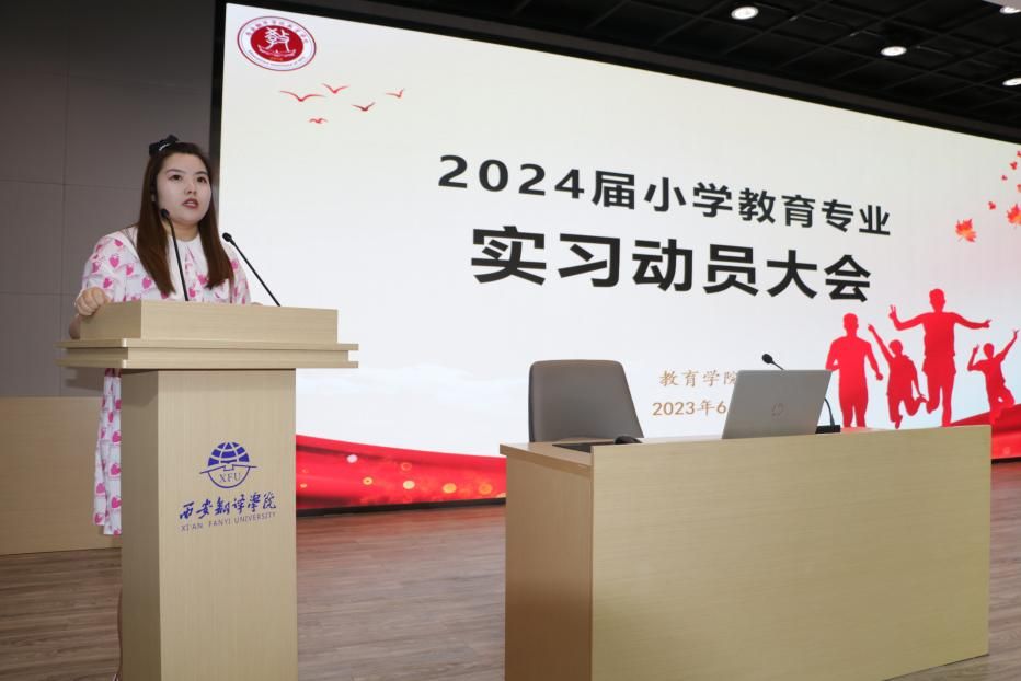 为进一步加强大学生理论与实践相结合,推动毕业生实习工作,教育学院于2023年6月28日在图书馆一楼多功能报告厅举行2024届小学教育专业毕业生实习动员大会,教育学院副院长辛维英,小学教育系主任杨宁,综合办副主任张改宁,小学教育系全体教师和2024届毕业生参加了动员大会,会议由邓晨老师主持。