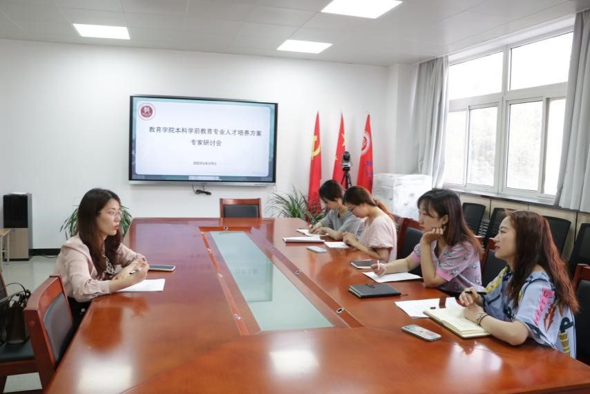 为更进一步地优化教育学院学前教育专业本科2022版人才培养方案,6月9日上午,教育学院学前教育系邀请陕西省艺术幼儿园保教主任姜自兰担任指导专家,对人才培养方案进行研讨。教育学院副院长庞小佳,学前教育系副主任杜赟,学前教育系教师白晓竹、张紫妍、王静参加了此次研讨会。