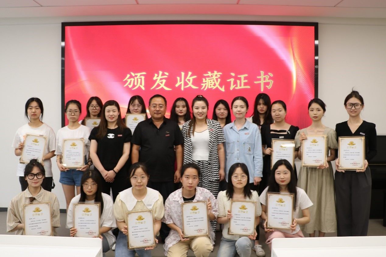 老师颁发收藏证书;由黄俊君老师、赵佳老师、高烨楠老师为入选同学颁发证书.