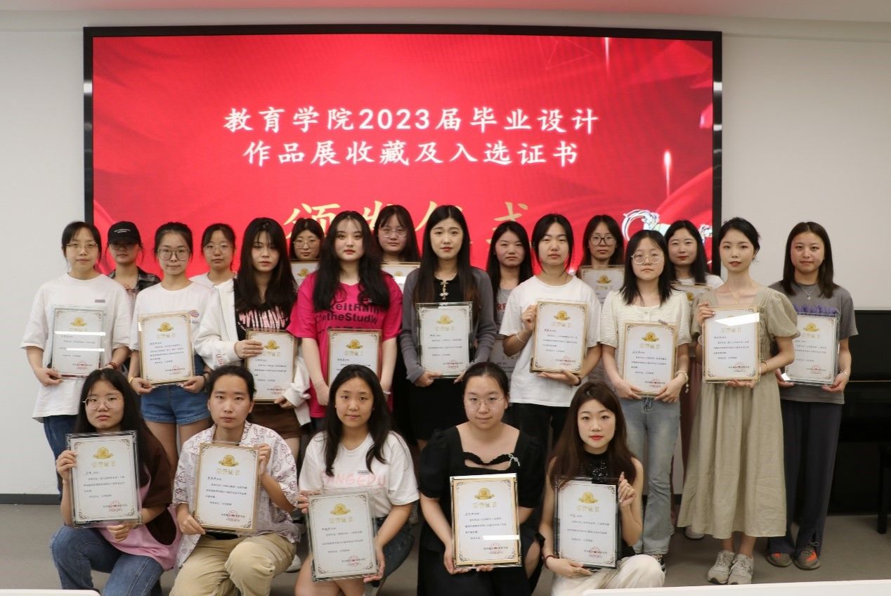 本次教育学院2023届毕业设计作品展收藏及入选证书颁发仪式标志着毕业展的正式落幕,祝愿所有参展学子在未来的工作中,将美育融入教育生涯中,以美育促教学“耕耘美育,筑梦未来”。