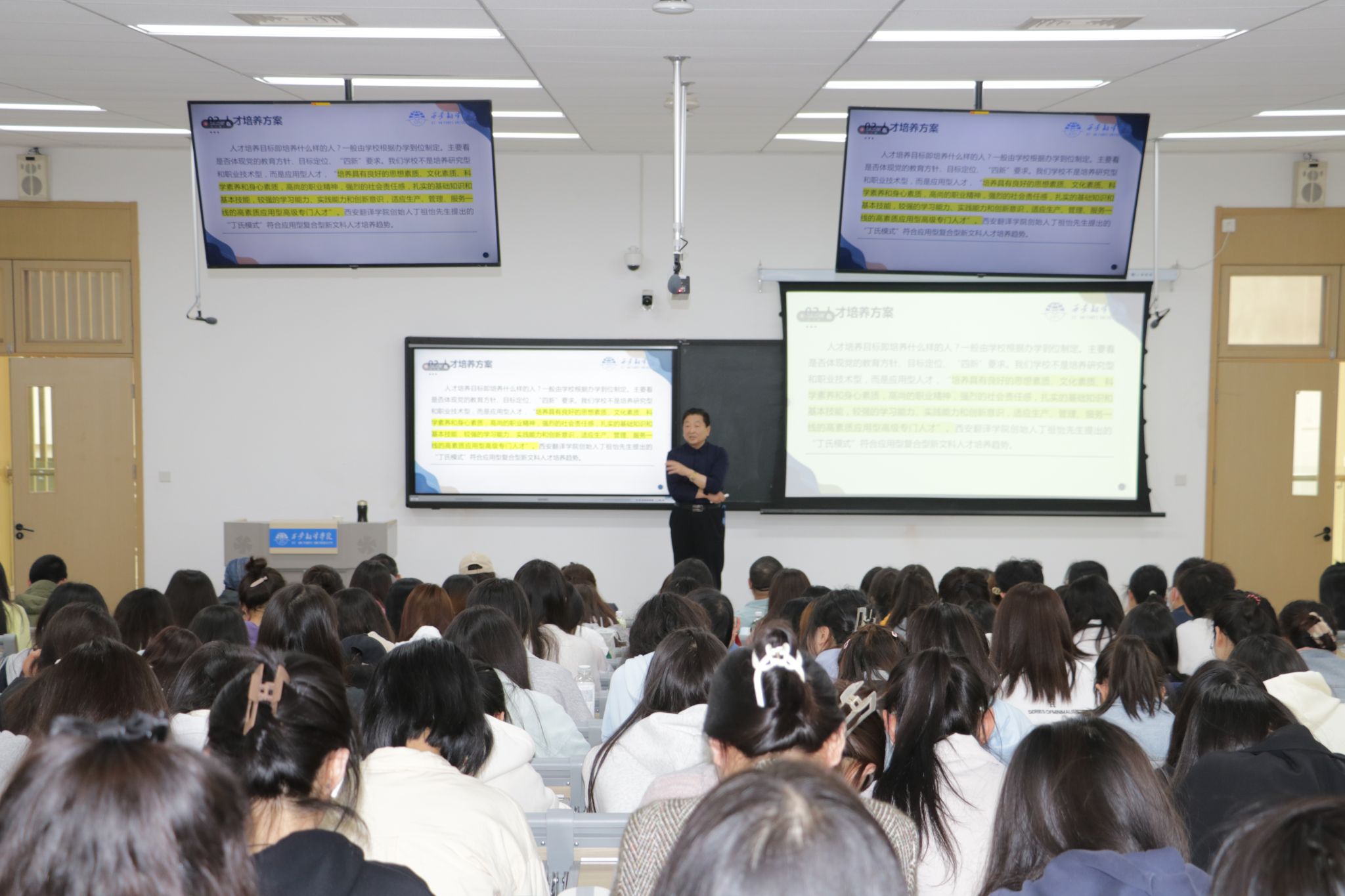齐玉水教授从“人生的自由、解放、发展与大学的使命”“大学专业的人才培养体系与质量”“我的大学我做主”三个方面进行了讲解。大学以探索、追求、捍卫、传播真理和知识为目的,负有引导社会价值观、规范社会行为的使命,对人类素质的改善和提高,对社会文明的发展和进步具有不可替代的重要影响力和推动力。齐玉水教授强调人才培养方案制定时要注重专业与产业对接,课程与岗位对接,教学过程与生产过程对接,体现未来职业资格要求。他鼓励同学们积极开展学业和职业规划,以扎实的专业知识为基础,德育体美劳全面发展。他殷切希望同学们多读书,提高自身的学习能力、思维能力、辨别能力、沟通能力、应用能力、合作能力、领导能力、创新能力、审美与价值判断能力,做最幸福的奋斗者。