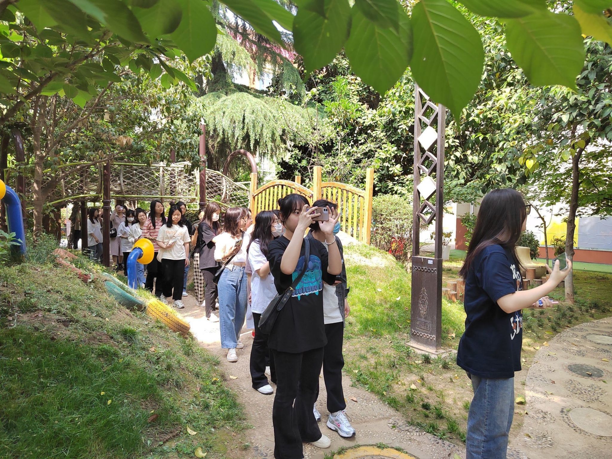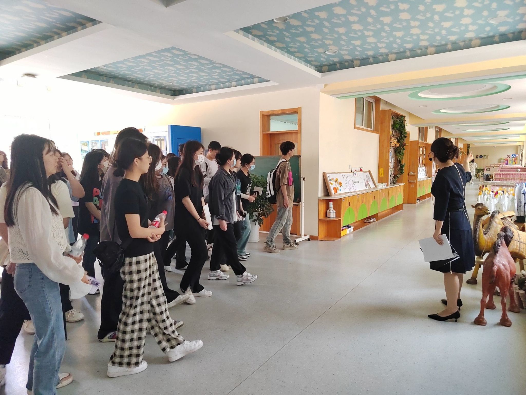 实习单位为我校师生共准备涉及语言、艺术、健康等领域的八节精品课程。并组织学生进行集中观摩。观摩结束后,授课教师首先对自己的教学活动进行了介绍与反思。见习学生也踊跃发言,充分表达了自己在观看集中观摩活动中的所见、所思和困惑。他们纷纷表示通过观摩活动和详细讲解,对幼儿园集体教学有了新的认识和思考。同时,我校师生参观了幼儿园户外环境、楼廊环境、特色区角等。学生熟悉了幼儿园环境的构成要素,明确了幼儿园环境创设的主旨和基本要求,更好地了解到幼儿的学习特点,这为他们理解学前教育新的发展方向,树立教书育人、保教并重、保教结合的理念打下了坚实的基础。
