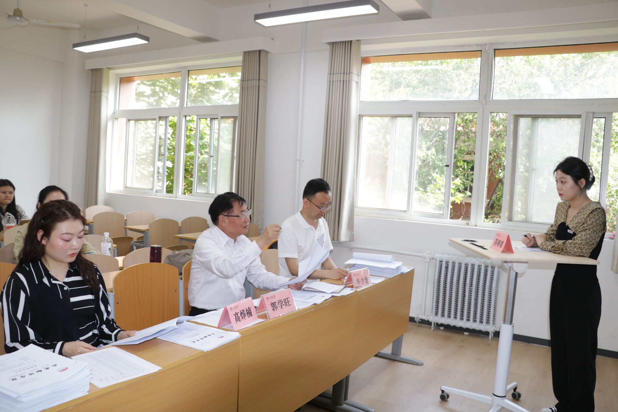答辩结束后,评委教师们对同学们几个月来的努力予以充分肯定,并对答辩中共性问题进行了点评和建议:如应更加注重格式的规范性,加强文献和资料调研的深度和广度,注重论文整体的系统性和连续性等。
