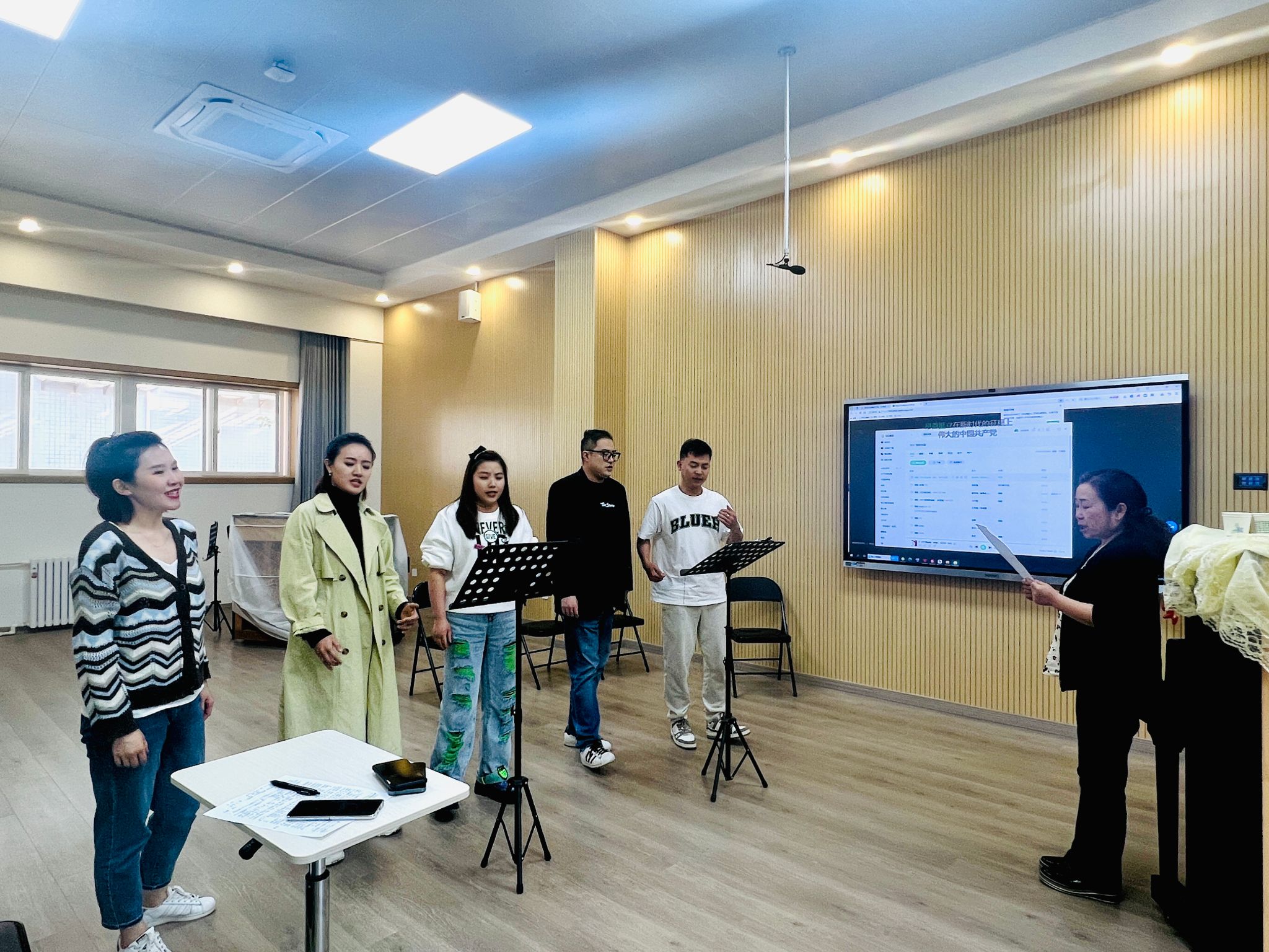 2023年5月11日下午,应教育学院邀请,陕西师范大学音乐学院声乐系教授,硕士生导师朱磊莅临教育学院指导美育教学中心教师们声乐演唱技巧及情感表达。会议由教育学院副院长辛维英主持,美育教学中心主任王越,青年教师胡媛媛、卢瑶、张鹤、秦静、樊吉宁、上佳怡参加了讲座。