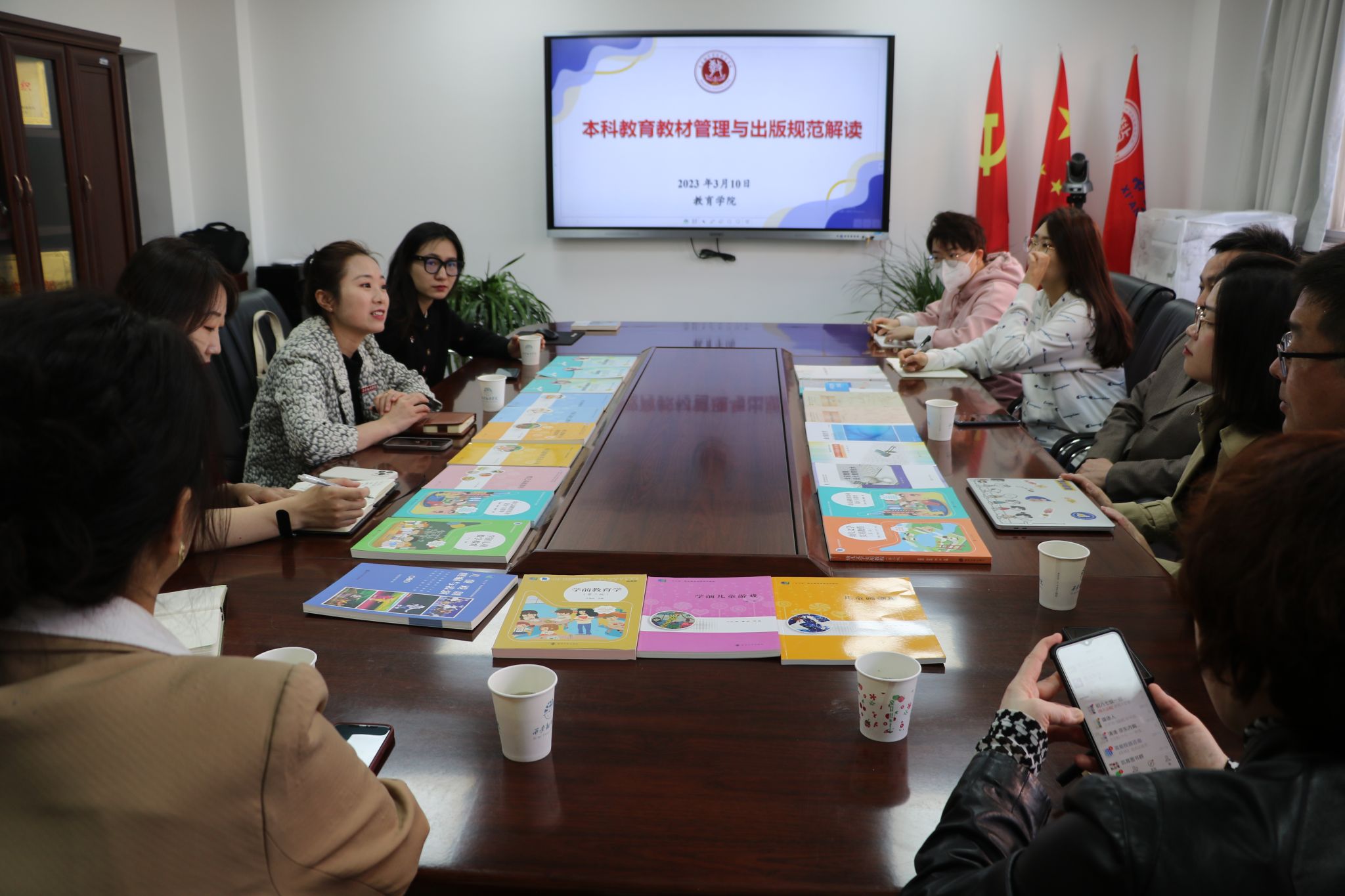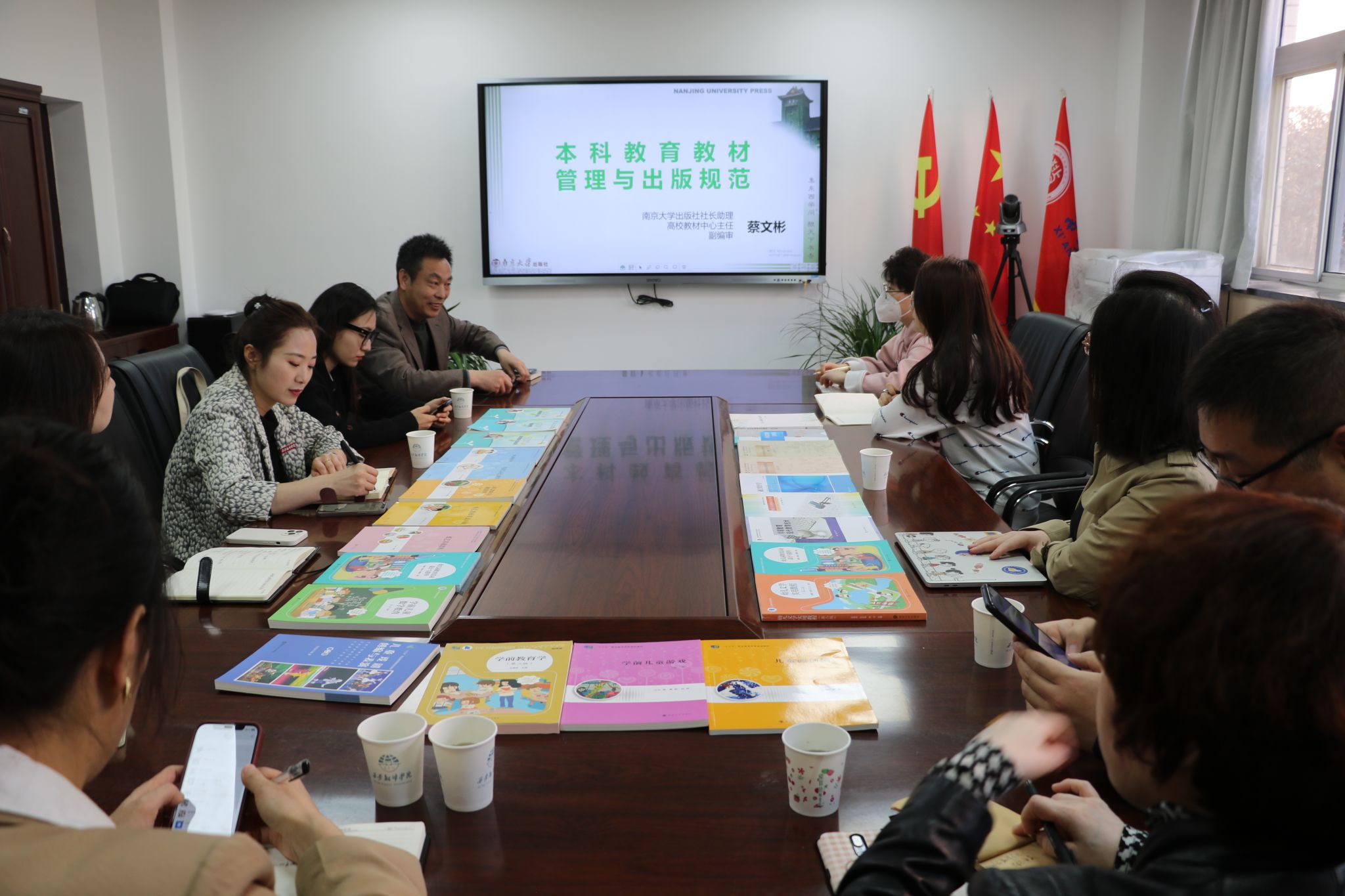 3月10日上午,南京大学出版社来我院洽谈教材建设相关事宜,就“本科教育教材管理与出版社规范”开展了研讨活动。教育学院副院长庞小佳主持本次活动,各专业教师代表和南京大学出版社代表共同参与。