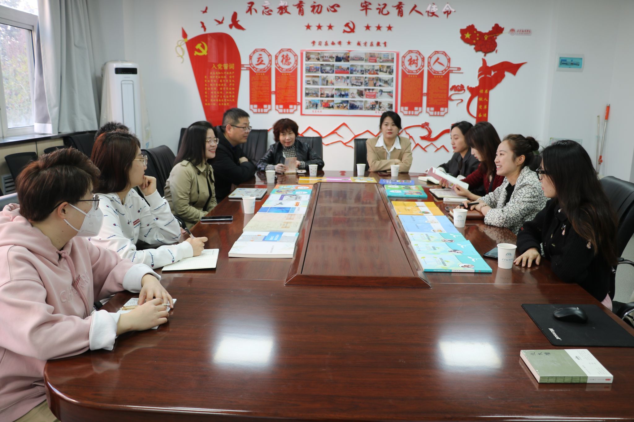 活动伊始,南京大学出版社编辑为大家介绍了南京大学出版社的基本概况,并从教材管理规范、教材出版及教材编写三个部分对教材出版的全过程进行讲述,使各位了解了教材出版的相关流程。随后,出版社结合学前教育专业教材建设与规划的发展理念、现有教材研究所依托的资源等对学前教育“专业群”图书进行了详细介绍。接着,出版社又从教材出版、选题策划、特色亮点及获奖情况四个方面重点介绍了小学教育专业的教材情况,让教师们充分了解教育专业教材的发展情况。研讨期间,我院教师结合专业发展及人才培养方案向出版社提出了对教材的需求,并与出版社交流了目前教材使用的体验,为出版社后续教材的更新与出版提供了参考思路,出版社表示希望邀请我院有经验、有兴趣的教师一起参编教育专业技能方向的课程教材。